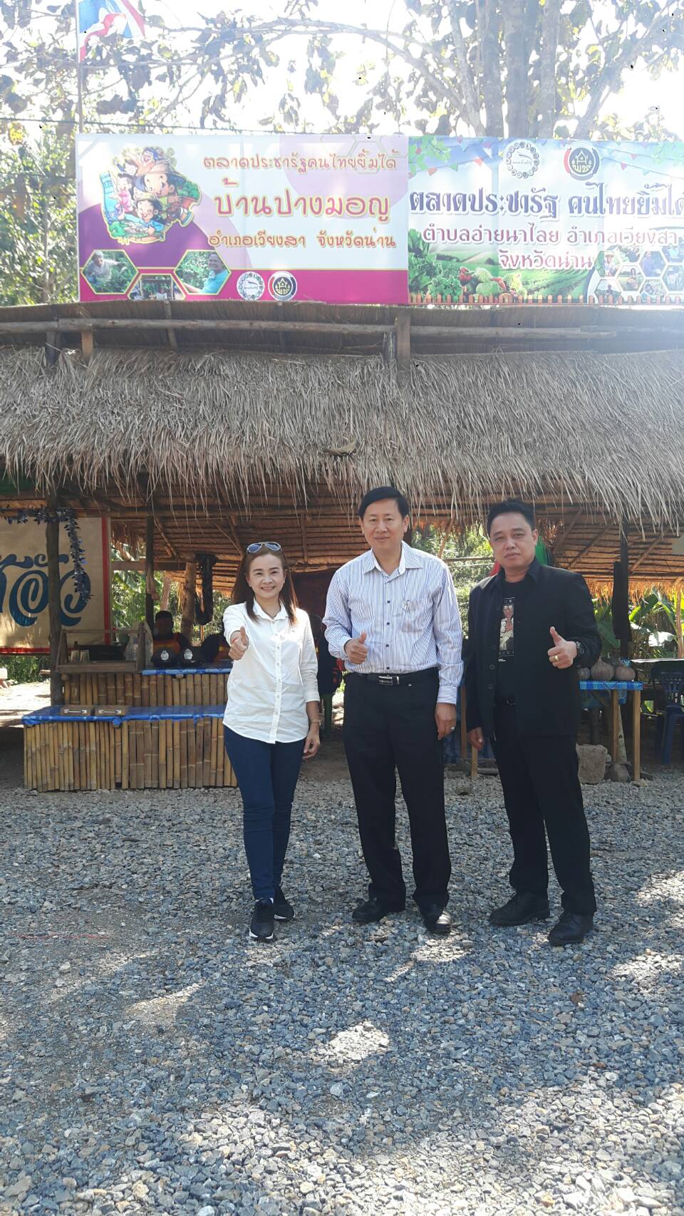 นายชำนาญ บุดาสา หัวหน้ากลุ่มงานยุทธศาสตร์ฯ พร้อมคณะตรวจเยียมตลาดประชารัฐ คนไทยยิ้มได้ บ้านปางมอญ อำเภอเวียงสา จังหวัดน่าน