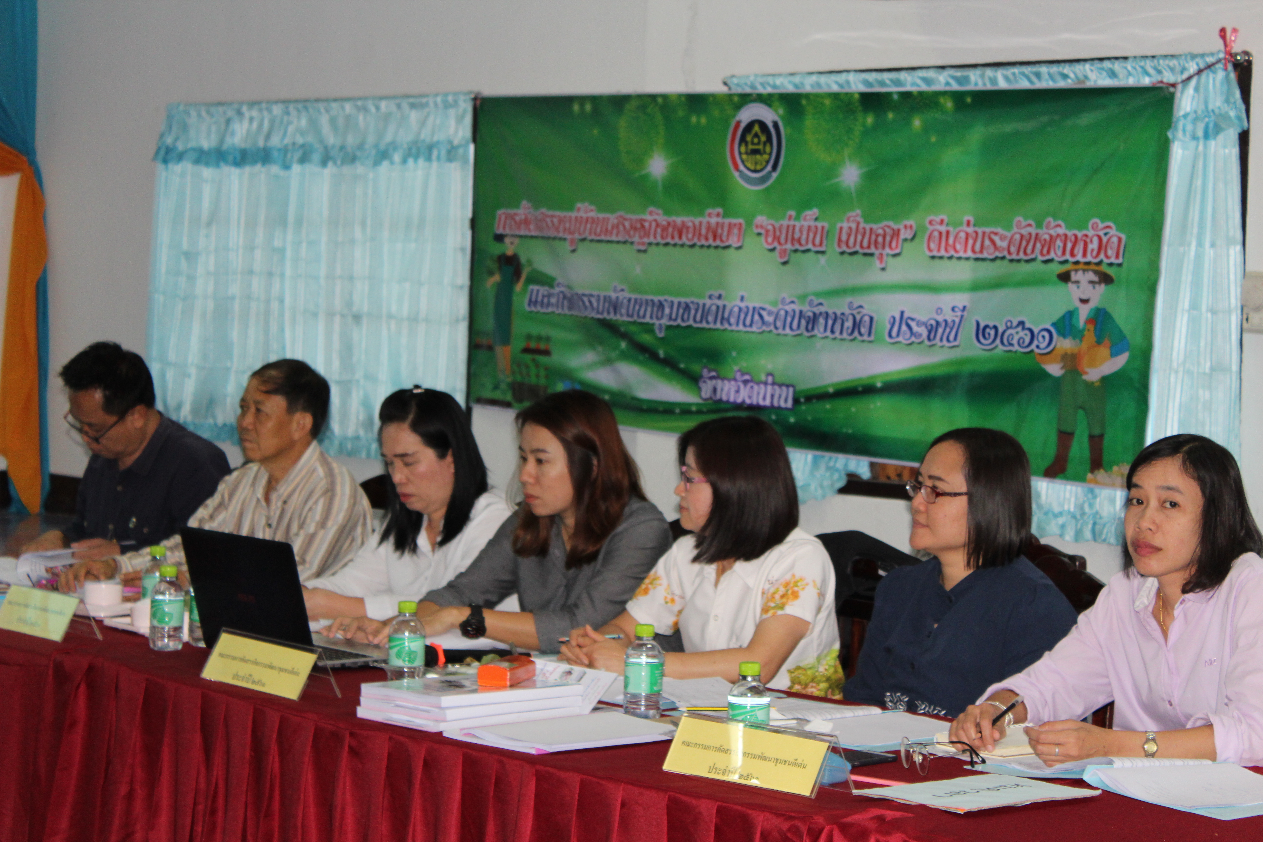 วันที่ 7 มิถุนายน 2561 เวลา 09.00 น. นางพิสมัย ชมเชย พัฒนาการจังหวัดน่าน ได้มอบหมายให้ นายประจักษ์จิตร สายนะที หัวหน้ากลุ่มงานสารสนเทศการพัฒนาชุมชน/นายวีระพันธ์ การินไชย หัวหน้ากลุ่มงานส่งเสริมการพัฒนาชุมชน พร้อมทีมงานนักวิชาการพัฒนาชุมชนกลุ่มงานฯ ดำเนินการคัดสรรหมู่บ้านเศรษฐกิจพอเพียง “อยู่เย็น เป็นสุข” ดีเด่นระดับจังหวัด และกิจกรรมพัฒนาชุมชนดีเด่นระดับจังหวัด ประจำปี 2561 เป็นจุดที่สาม จำนวน 3 อำเภอ (เวียงสา+นาน้อย+นาหมื่น) ณ ห้องประชุมที่ทำการชมรมกำนันผู้ใหญ่บ้านอำเภอเวียงสา ที่ว่าการอำเภอเวียงสา จังหวัดน่าน