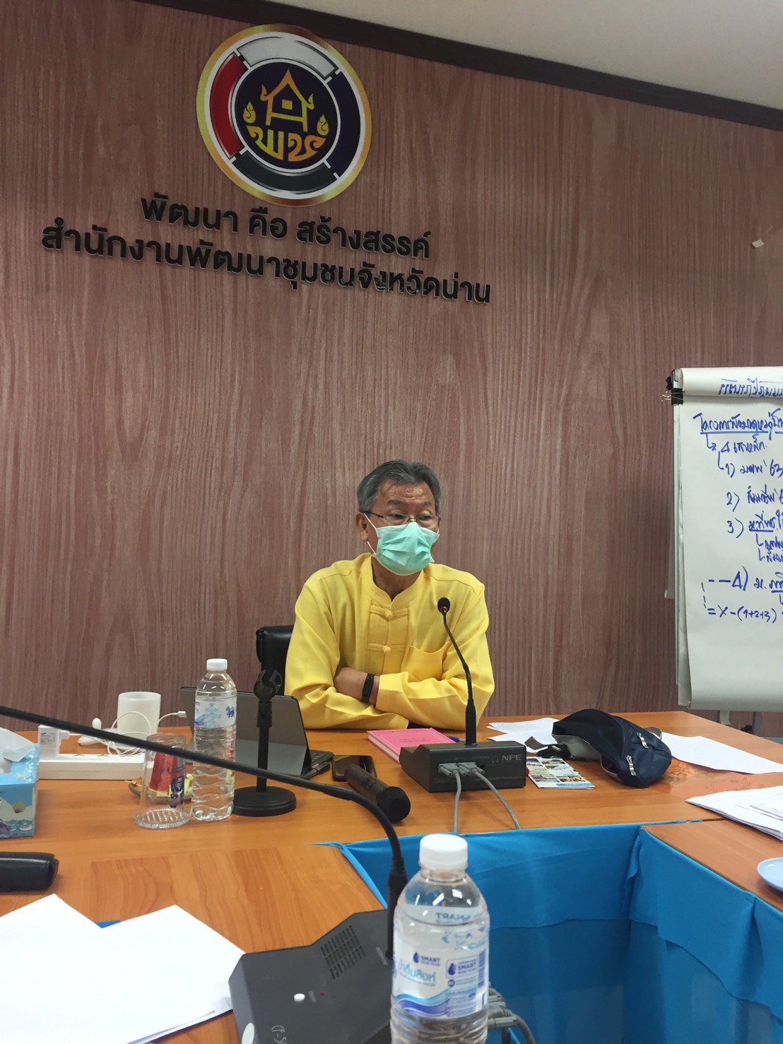 ?วันที่ 20 มีนาคม 2563 ณ ห้องประชุมสำนักงานเลขานุการคณะอนุกรรมการกองทุนพัฒนาบทบาทสตรีระดับจังหวัด จังหวัดน่าน นายไพบูลย์ บูรณสันติ ผู้ตรวจราชการกรมการพัฒนาชุมชน พร้อมผู้ช่วยผู้ตรวจราชการกรมฯ ได้ตรวจติดตามการดำเนินงานตามนโยบายกระทรวงมหาดไทยข้อสั่งการของอธิบดีกรมการพัฒนาชุมชน โดยมีนายชำนาญ บุดาสา พัฒนาการจังหวัดน่าน พร้อมด้วยนางณัฐนรี ศรีชัยยะ หัวหน้ากลุ่มงานส่งเสริมการพัฒนาชุมชน นายวีระพันธ์ การินไชย หัวหน้ากลุ่มงานสารสนเทศการพัฒนาชุมชน นางชนิกา นันชัยหัวหน้าฝ่ายอำนวยการและนักวิชาการพัฒนาชุมชน สำนักงานพัฒนาชุมชนจังหวัดน่าน รับการตรวจติดตาม