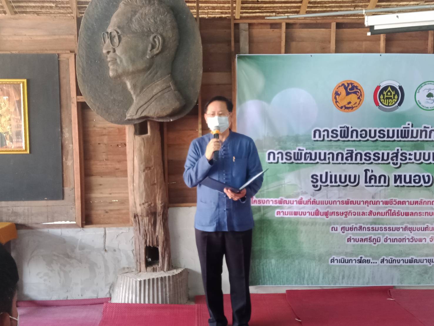 พช.น่าน : อบรมเพิ่มทักษะระยะสั้นการพัฒนากสิกรรมสู่ระบบเศรษฐกิจพอเพียง รูปแบบ โคก หนอง นา โมเดล รุ่นที่ 1 วันอังคาร ที่ 19 มกราคม 2564 นายชำนาญ บุดาสา พัฒนาการจังหวัดน่าน เป็นประธานในพิธีเปิดการอบรมเพิ่มทักษะระยะสั้นการพัฒนากสิกรรมสู่ระบบเศรษฐกิจพอเพียงรูปแบบโคก หนอง นา โมเดล โครงการพัฒนาพื้นที่ต้นแบบการพัฒนาคุณภาพชีวิตตามหลักทฤษฎีใหม่ประยุกต์สู่ โคก หนอง นา โมเดล โดยได้กำหนดดำเนินการฝึกอบรมแก่กลุ่มเป้าหมายครัวเรือนต้นแบบและพนักงานจ้าง รุ่นที่ 1 จำนวน 80 คน ระหว่างวันที่ 19 – 23 มกราคม 2564 ณ ศูนย์กสิกรรมธรรมชาติชุมชนต้นน้ำน่าน (ชตน.) ตำบลศรีภูมิ อำเภอท่าวังผา ในการนี้มีนางณัฐนรี ศรีชัยยะ ผู้อำนวยการกลุ่มงานส่งเสริมการพัฒนาชุมชน, นายยอดชาย ผ้าเจริญ ผู้อำนวยการกลุ่มงานยุทธศาสตร์การพัฒนาชุมชน, นายชัยยะ ศรีชัยยะ ผู้อำนวยการกลุ่มงานสารสนเทศการพัฒนาชุมชน, นางสาวธัญภรณ์ ณ น่าน รักษาการในตำแหน่งผู้อำนวยการกลุ่มงานประสานและสนับสนุนการบริหารงานพัฒนาชุมชน, นายธงชัย ธนสถิตย์ พัฒนาการอำเภอท่าวังผา และนักวิชาการพัฒนาชุมชน สำนักงานพัฒนาชุมชนจังหวัดน่าน ร่วมพิธีเปิดกิจกรรมดังกล่าว โดยมีนางสาวกุล ปัญญาวงศ์ ผู้อำนวยการศูนย์กสิกรรมธรรมชาติชุมชนต้นน้ำน่าน (ชตน.) ร่วมพบปะให้กำลังใจแก่ผู้เข้ารับการอบรม