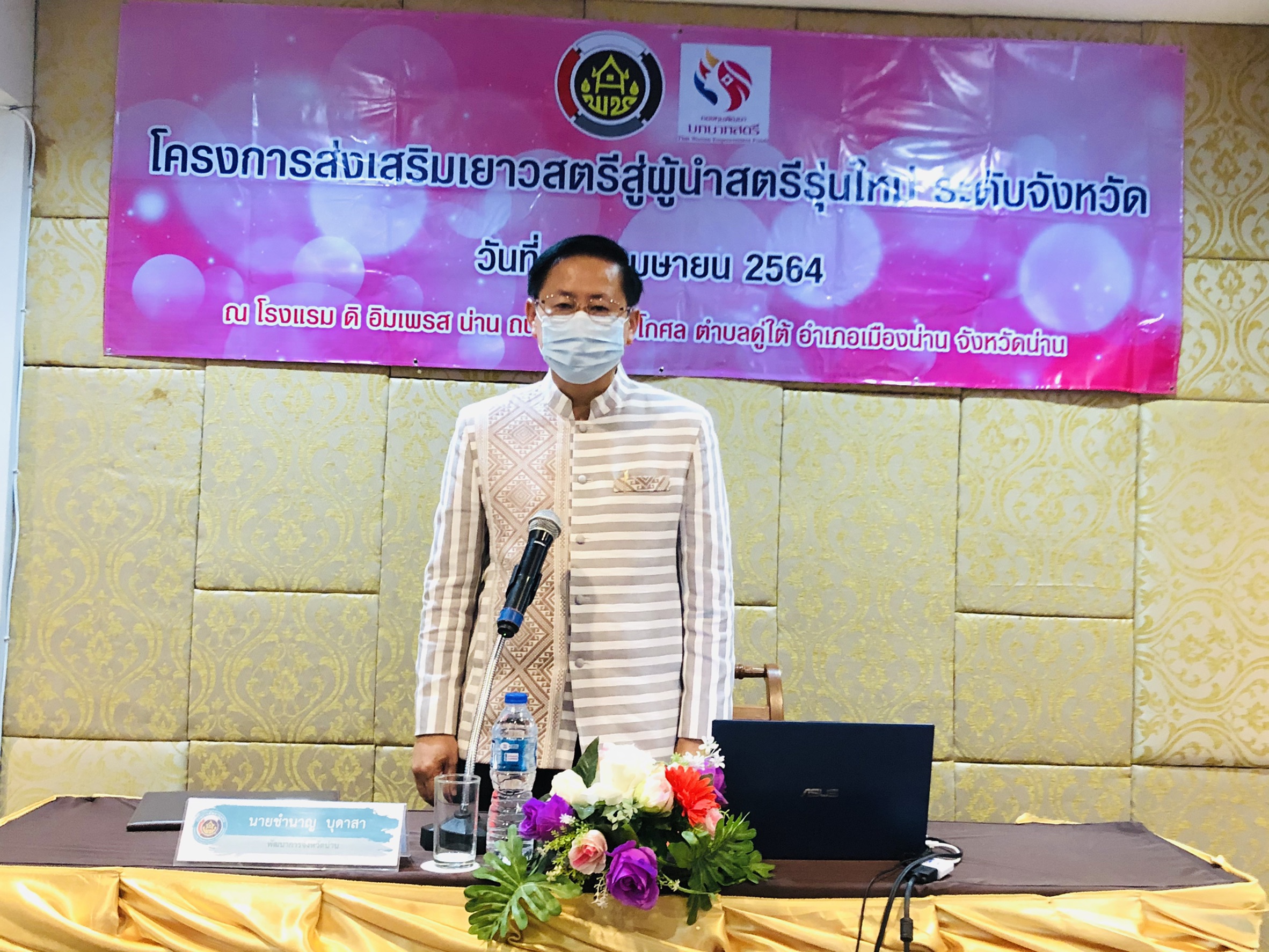 ⏰ วันพุธที่ 7 เมษายน 2564 เวลา 13.00 น. นายชำนาญ บุดาสา พัฒนาการจังหวัดน่าน เป็นประธานในพิธีเปิดโครงการส่งเสริมเยาวสตรีสู่ผู้นำสตรีรุ่นใหม่ระดับจังหวัดโดยมีวัตถุประสงค์เพื่อพัฒนาศักยภาพและส่งเสริมเยาวสตรีกองทุนพัฒนาบทบาทสตรีสู่การเป็นผู้นำสตรีรุ่นใหม่ ตลอดจนส่งเสริมให้เยาวสตรีกองทุนพัฒนาบทบาทสตรีมีส่วนร่วมในการดำเนินงานขับเคลื่อนกองทุนพัฒนาบทบาทสตรีตามวัตถุประสงค์ที่ได้กำหนดไว้อย่างมีประสิทธิภาพ