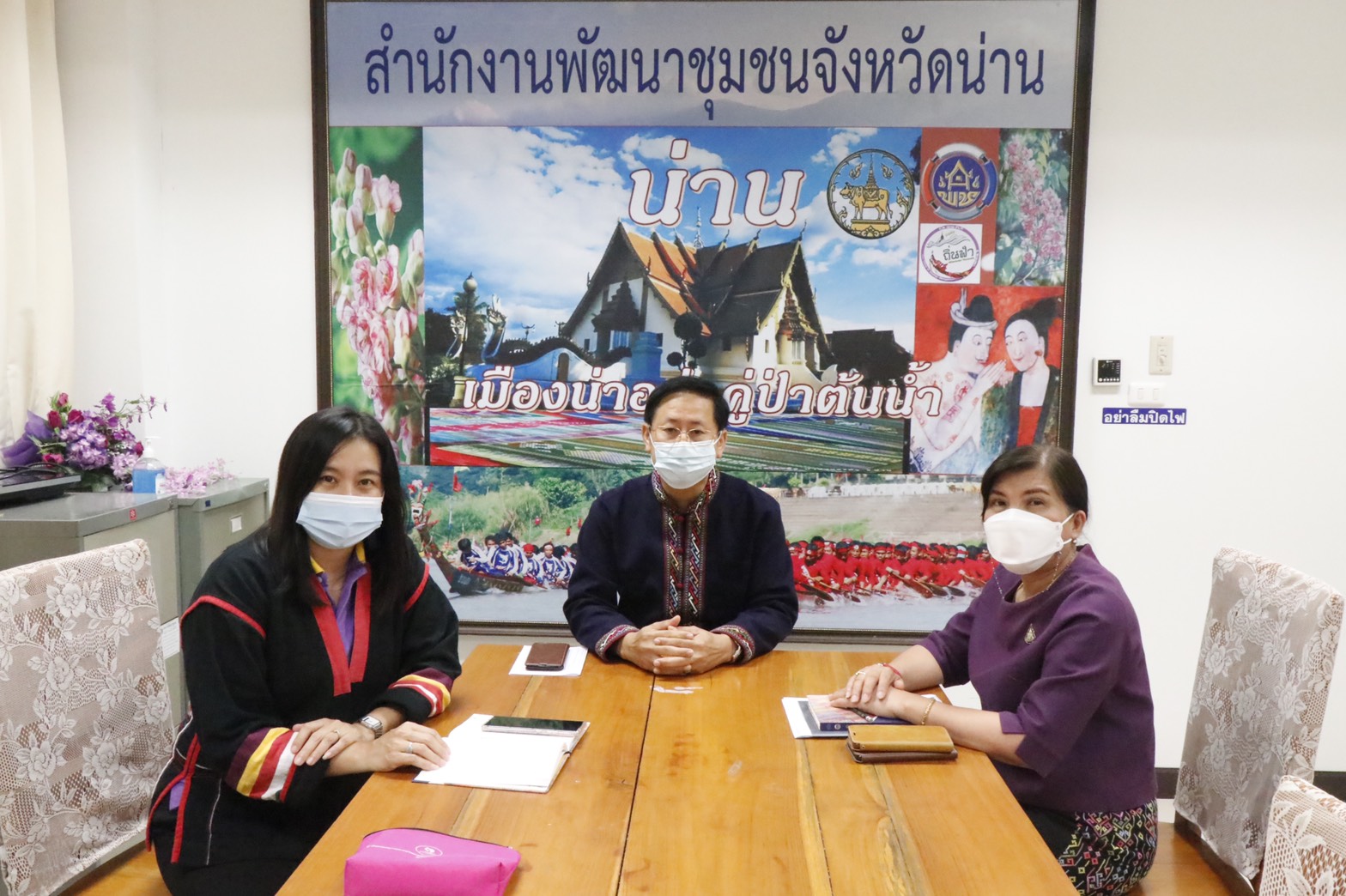 ?ในการนี้นายชำนาญ บุดาสา พัฒนาการจังหวัดน่าน นางณัฐนรี ศรีชัยยะ ผู้อำนวยการกลุ่มงานส่งเสริมการพัฒนาชุมชน และนักวิชาการผู้รับผิดชอบโครงการฯ เข้าร่วมประชุม ณ ห้องประชุมสำนักงานพัฒนาชุมชนจังหวัดน่าน