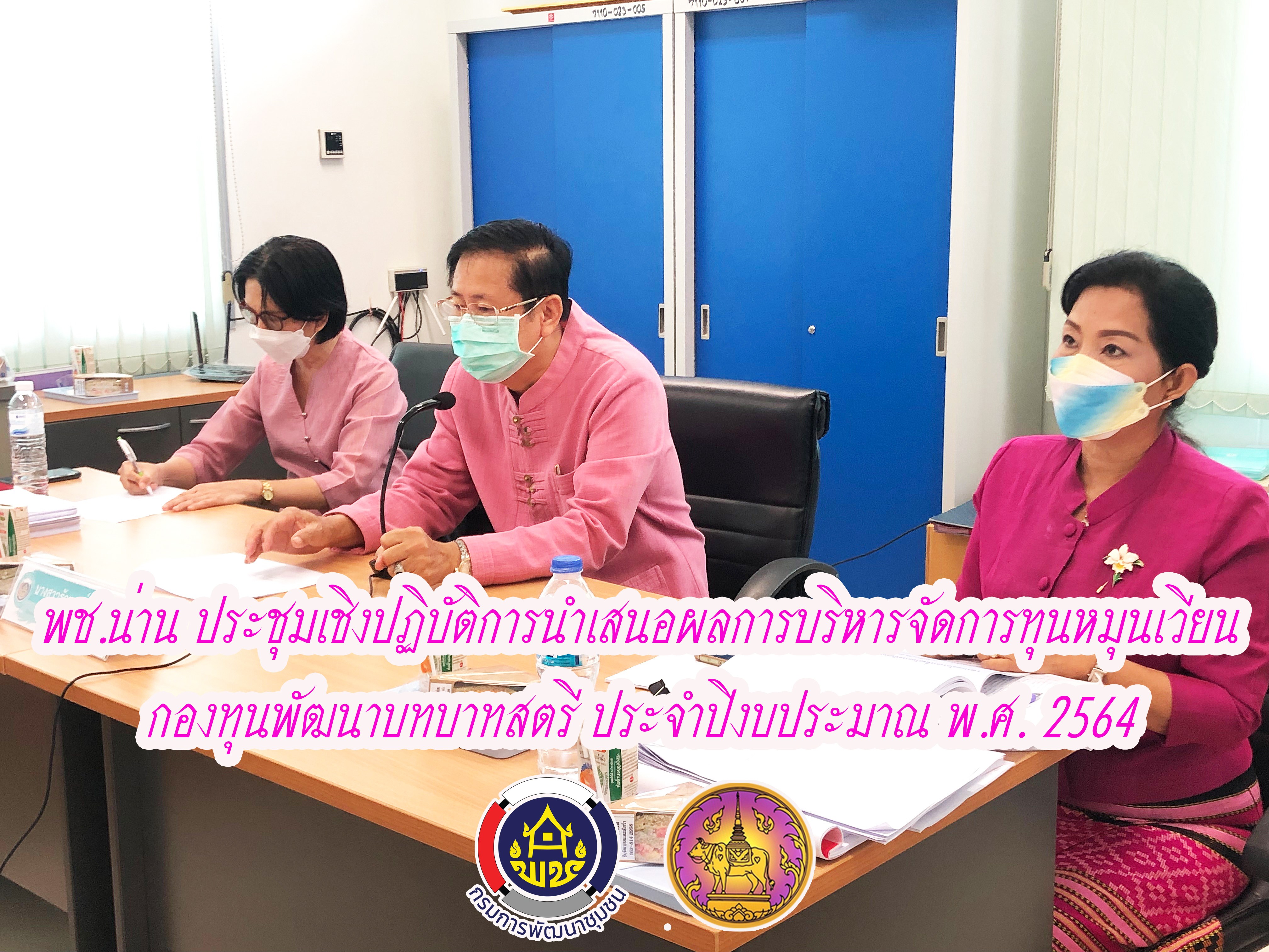 @ที่นี่เมืองน่าน@ พช.น่าน ประชุมเชิงปฏิบัติการนำเสนอผลการบริหารจัดการทุนหมุนเวียนกองทุนพัฒนาบทบาทสตรี ประจำปีงบประมาณ พ.ศ. 2564