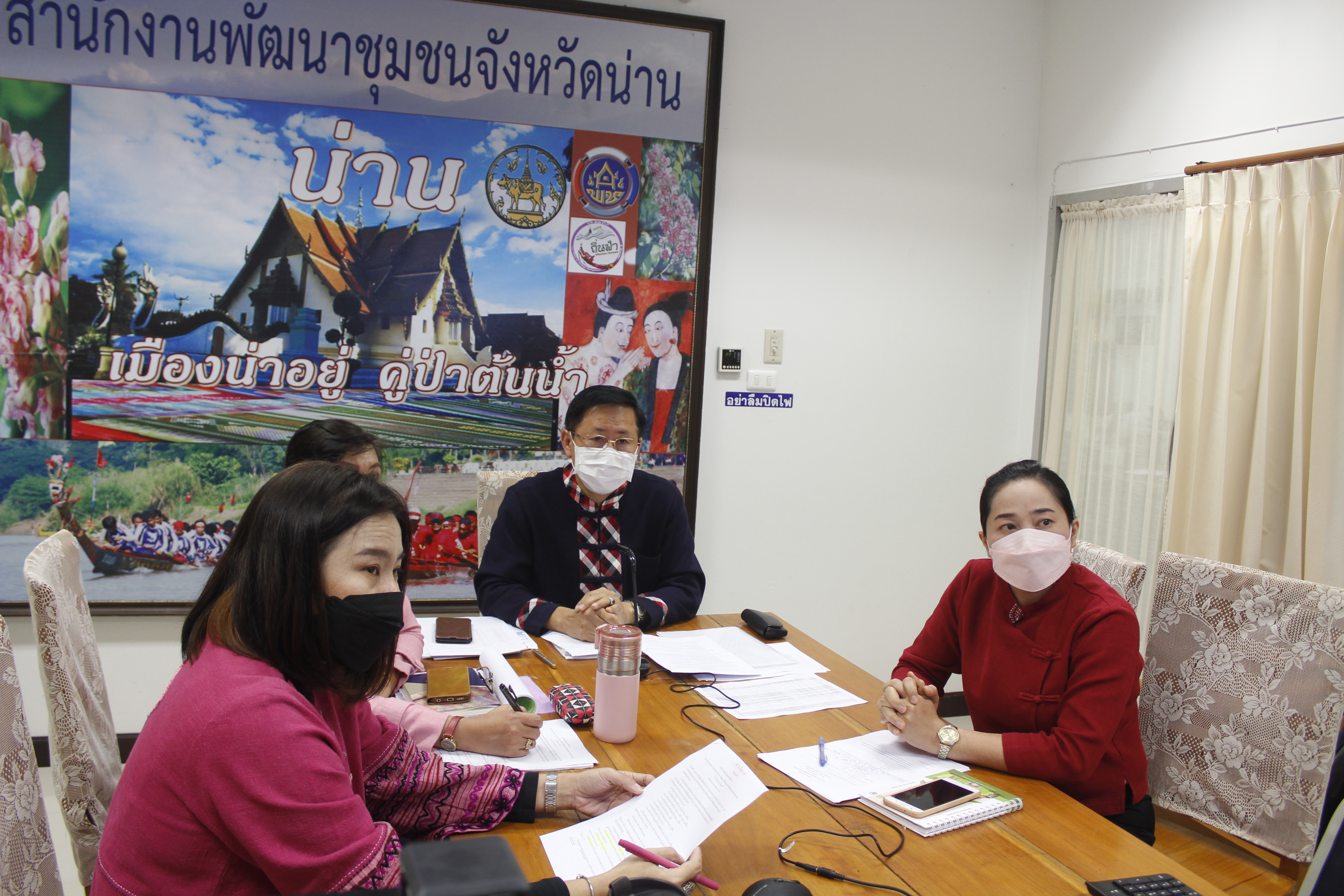 ในการนี้ นายชำนาญ บุดาสา พัฒนาการจังหวัดน่าน พร้อมด้วย นางณัฐนรี ศรีชัยยะ ผู้อำนวยการกลุ่มงานส่งเสริมการพัฒนาชุมชน และนักวิชาการพัฒนาชุมชน ร่วมประชุมฯ และให้ข้อมูลประเด็นปัญหาการดำเนินงานโครงการพัฒนาพื้นที่ต้นแบบการพัฒนาคุณภาพชีวิตตามหลักทฤษฎีใหม่ ประยุกต์สู่ “โคก หนอง นา โมเดล” เพื่อให้สามารถเบิกจ่ายงบประมาณโครงการพัฒนาพื้นที่ต้นแบบการพัฒนาคุณภาพชีวิตตามหลักทฤษฎีใหม่ ประยุกต์สู่ “โคก หนอง นา โมเดล” ได้ทันตามห้วงเวลาที่กำหนดไว้ ณ ห้องประชุมสำนักงานพัฒนาชุมชนจังหวัดน่าน ชั้น 3 ศาลากลางจังหวัดน่าน