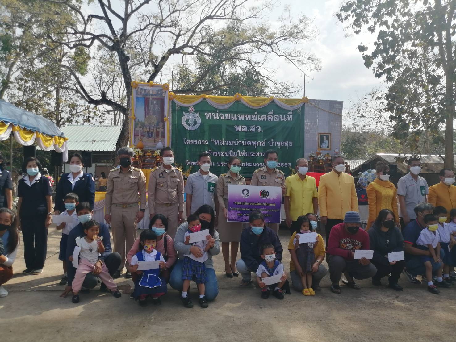 วันที่ 3 กุมภาพันธ์ 2565 เวลา 09.00 น. นายสมศักดิ์ สุวรรณสุจริต ประธานผู้ตรวจราชการแผ่นดิน พร้อมด้วยนายวิบูรณ์ แววบัณฑิต ผู้ว่าราชการจังหวัดน่าน นำข้าราชการประกอบด้วย นายกเหล่ากาชาดจังหวัดน่าน หัวหน้าส่วนราชการส่วนภูมิภาค ส่วนกลาง หน่วยงานรัฐวิสาหกิจ หัวหน้าหน่วยงานภาครัฐและภาคเอกชนที่เกี่ยวข้อง จัดกิจกรรมหน่วยแพทย์เคลื่อนที่ พอ.สว. กิจกรรมหน่วยบำบัดทุกข์ บำรุงสุข สร้างรอยยิ้มให้ประชาชน จังหวัดน่าน ปีงบประมาณ พ.ศ.2565 และกิจกรรมเพื่อสังคม ผู้ตรวจราชการแผ่นดิน เราทำความดีด้วยหัวใจ ณ วิสาหกิจชุมชนชีววิถี ตำบลน้ำเกี๋ยน อำเภอภูเพียง จังหวัดน่าน