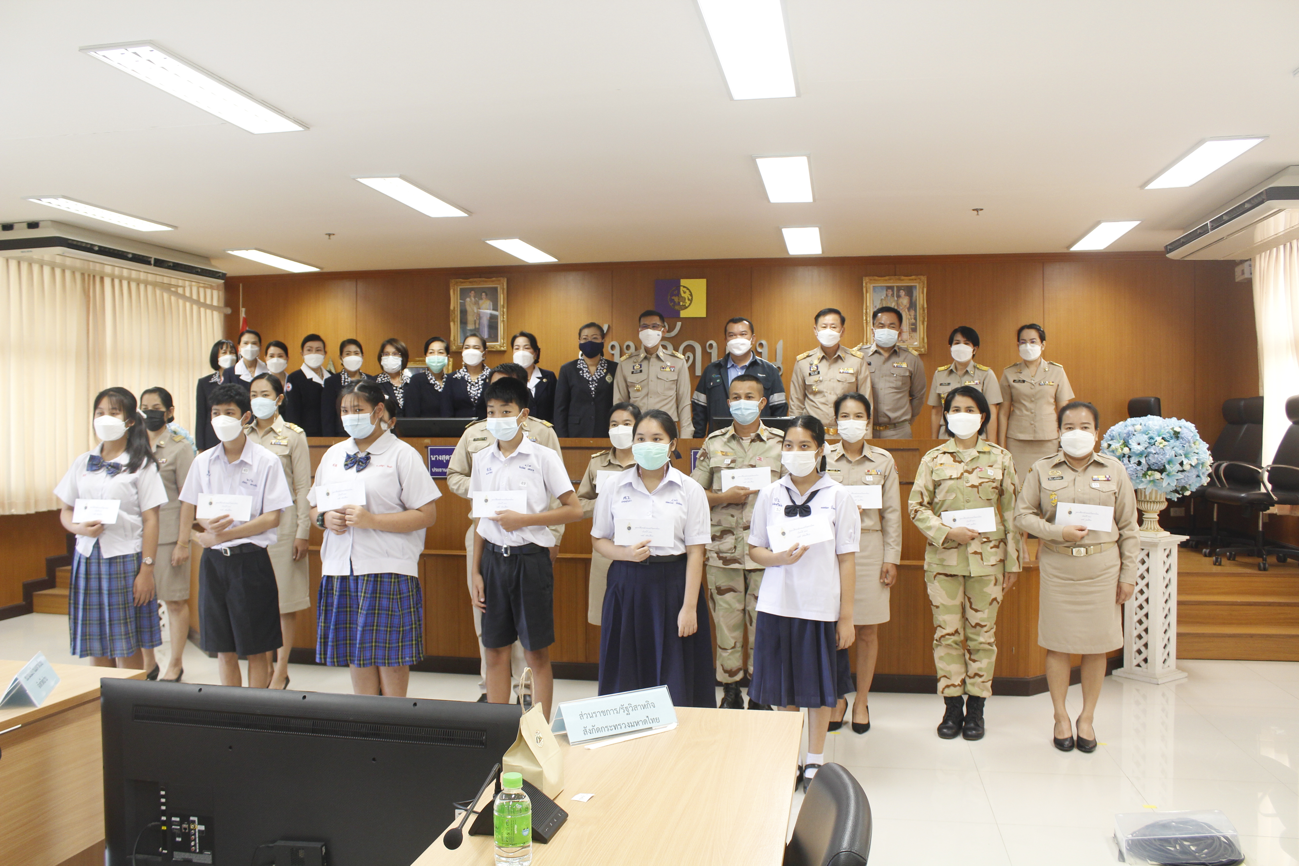วันที่ 21 กุมภาพันธ์ 2565 เวลา 09.00 น. นายวิบูรณ์ แววบัณฑิต ผู้ว่าราชการจังหวัดน่าน พร้อมด้วยนางสุดารัตน์ แววบัณฑิต ประธานแม่บ้านมหาดไทยจังหวัดน่าน และหัวหน้าส่วนราชการจังหวัดน่าน ร่วมมอบทุนการศึกษาของสมาคมแม่บ้านมหาดไทย ประจำปี 2565 ให้แก่บุตรข้าราชการ ลูกจ้างประจำ และพนักงานของส่วนราชการ หรือหน่วยงานรัฐวิสาหกิจในสังกัดกระทรวงมหาดไทย และสมาชิกกองอาสารักษาดินแดน จังหวัดน่าน เพื่อสร้างขวัญกำลังใจ ให้แก่บุตรที่กำลังศึกษาของครอบครัวข้าราชการในสังกัดกระทรวงมหาดไทย บุตรของสมาชิกกองอาสารักษาดินแดนที่ปฏิบัติภารกิจในจังหวัดน่าน เป็นมีความประพฤติดี ตั้งใจเรียนและขาดแคลนทุนทรัพย์ มีความประพฤติดี ขยันหมั่นเพียร ณ ห้องประชุมพระเจ้าสุริยพงษ์ผริตเดช ชั้น 3 ศาลากลางจังหวัดน่าน