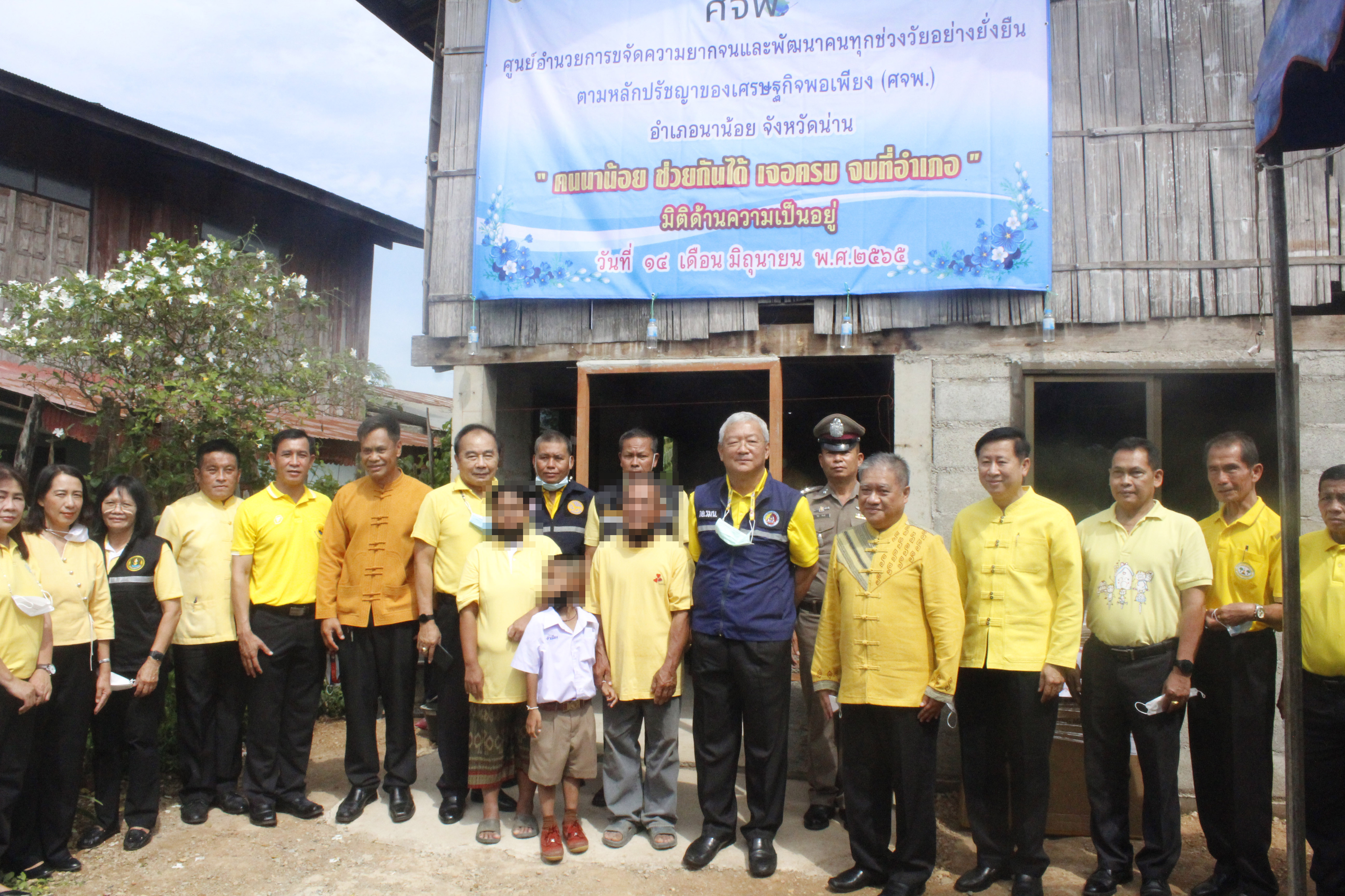อำเภอนาน้อย มีครัวเรือนยากจนตามเป้าหมายในระบบ TPMAP ปี 2565 จำนวน 1,359 ครัวเรือน ที่ประสบปัญหาในทุกมิติ ทั้ง 5 ด้าน โดยได้ดำเนินการบูรณาการการทำงานร่วมกันทุกภาคส่วน ทั้งในระดับหมู่บ้าน ตำบล อำเภอ และจังหวัด และในกิจกรรม “Kick off ขับเคลื่อนการขจัดความยากจนและพัฒนาคนทุกช่วงวัยตามหลักปรัชญาของเศรษฐกิจพอเพียง” มีวัตุประสงค์เพื่อเป็นการบูรณาการ การให้ความช่วยเหลือแก่ประชาชนในพื้นที่ ที่ประสบปัญหาในมิติด้านความเป็นอยู่ กิจกรรมการซ่อมแซมที่อยู่อาศัย ครัวเรือนของ นายอนงค์ ปานต๊ะระษี บ้านหนอง หมู่ที่ 10 ตำบลศรีษะเกษ อำเภอนาน้อย จังหวัดน่าน ซึ่งพบว่า สภาพบ้านของบุคคลดังกล่าว มีสภาพข้างฝาเป็นไม้ไผ่ เสื่อมสภาพแล้ว ประกอบกับครัวเรือนมีรายได้น้อยและเป็นผู้สูงอายุ ไม่สามารถพึ่งพาตนเองในการซ่อมแซมฝาบ้านให้มีความคงทนถาวร ทั้งนี้ ในการดำเนินกิจกรรมดังกล่าวไม่ได้ใช้งบประมาณของทางราชการแต่อย่างใด โดยได้ดำเนินการบูรณาการการดำเนินกิจกรรมร่วมกันทุกภาคส่วนในพื้นที่ในการสนับสนุนวัสดุ อุปกรณ์ในการซ่อมแซมที่อยู่อาศัย และใช้แรงงานจิตอาสาในพื้นที่ร่วมดำเนินกิจกรรม