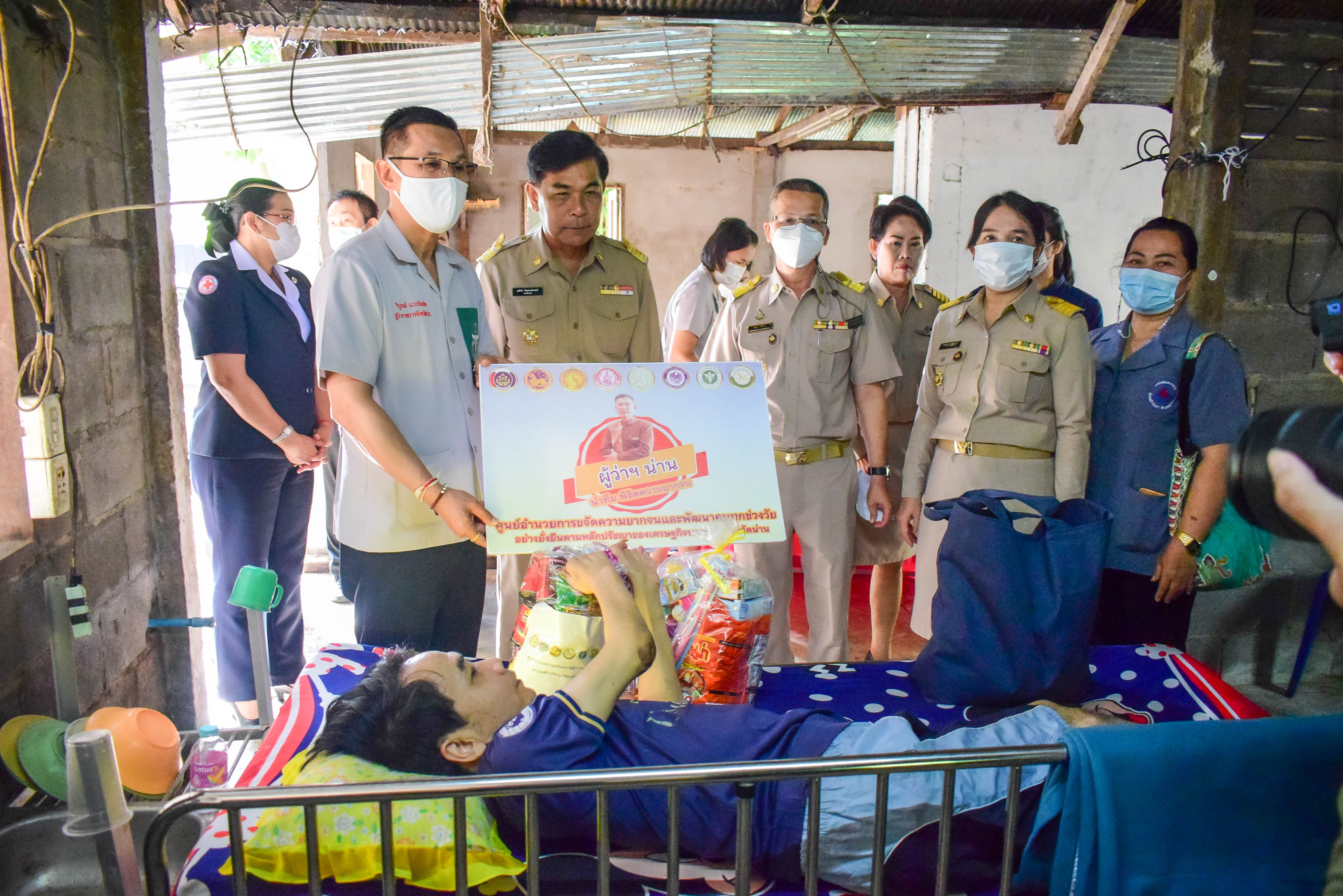 วันที่ 29 มิถุนายน 2566 นายวิบูรณ์ แววบัณฑิต ผู้ว่าราชการจังหวัดน่าน พร้อมด้วยนางสุดารัตน์ แววบัณฑิต นายกเหล่ากาชาดน่าน และนายสุทัศน์ จินตเวชศาสตร์ นายอำเภอท่าวังผา หัวหน้าส่วนราชการระดับจังหวัดและอำเภอ ผู้นำท้องถิ่น/ท้องที่ อสม. และข้าราชการ ลงพื้นที่เยี่ยมบ้านครัวเรือนยากจน TPMAP นายคำพัน สุพรรณ อายุ ๕๐ปี บ้านเลขที่ ๑๗๖ บ้านท่าวังผา ๒ หมู่ที่ ๖ ตำบลท่าวังผา อำเภอท่าวังผา จังหวัดน่าน โดยนายคำพัน สุพรรณ อาศัยอยู่คนเดียว สภาพร่างกายพิการ ป่วยติดเตียงเนื่องจากประสบอุบัติเหตุทางรถยนต์ตอนอายุ 25 ปี ทำให้กระดูกต้นคอหักทับเส้นประสาท มีรายได้มาจาก เบี้ยผู้พิการ บัตรสวัสดิการแห่งรัฐ จากการลงพื้นที่ติดตามสอบถามปัญหาความต้องการของครัวเรือนมีความต้องการเครื่องอุปโภค บริโภค เช่น ข้าวเจ้า และอาหารสำเร็จรูป เพื่อใช้ดำรงชีวิตประจำวัน ต่อเติมฝ้าเพดานบริเวณที่นอน ซ่อมแซมรางรินรอยต่อหลังคาซึ่งเป็นรูรั่วเนื่องจากเศษใบไม้ทับถม และฝ้า เพดานพุกร่อน โดยผู้ว่าราชการจังหวัดน่านได้มอบหมายให้องค์กรปกครองส่วนท้องถิ่นในพื้นที่ได้เข้ามาช่วยแก้ไขปัญหาเรื่องไฟฟ้าภายในบ้านให้มีความปลอดภัย และหน่วยงานพัฒนาสังคมและความมั่นคงของมนุษย์จังหวัดน่าน จะได้เข้ามาให้ความช่วยเหลือเรื่องการซ่อมแซมบ้านให้มีความเหมาะสมในการดำรงชีวิต เพื่อพัฒนาคุณภาพชีวิตของครัวเรือนต่อไป โดยมีหน่วยงานต่างๆได้มอบถุงยังชีพ เครื่องอุปโภค บริโภค เพื่อบรรเทาปัญหาความเดือดร้อนในเบื้องต้น