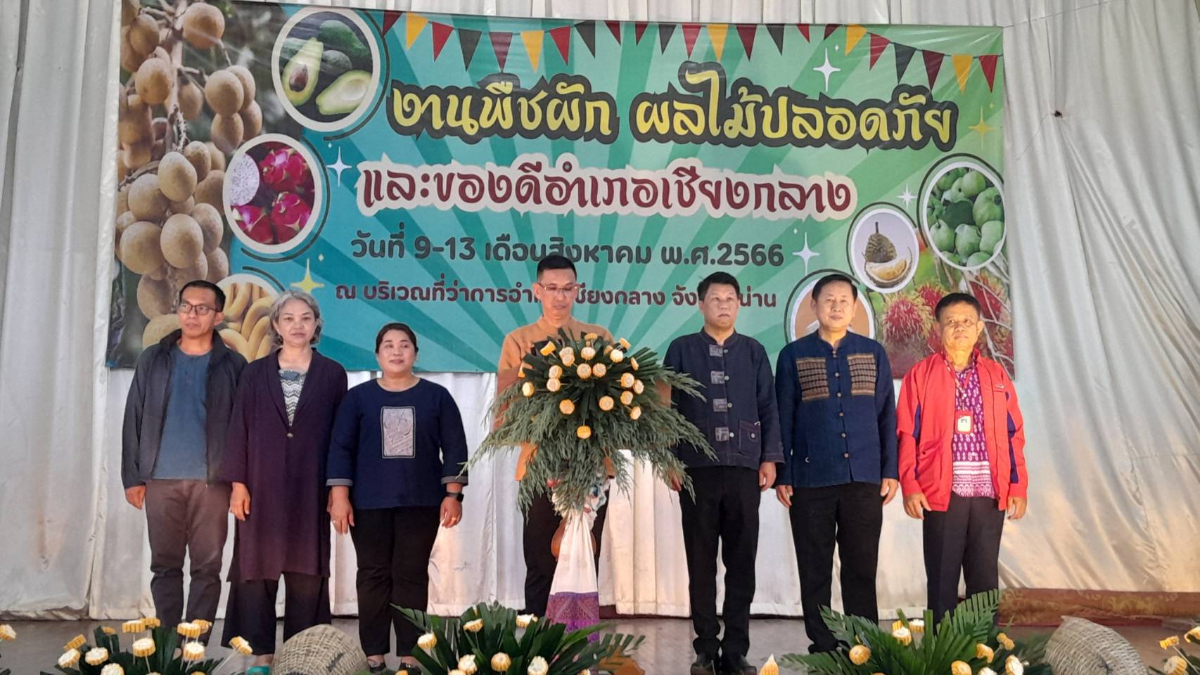 วันที่ 10 สิงหาคม 2566 เวลา 09.00 น. นายวิบูรณ์ แววบัณฑิต ผู้ว่าราชการจังหวัดน่าน เป็นประธานพิธีเปิดงาน “พืชผักปลอดภัยและของดีอำเภอเชียงกลาง” ประจำปี 2566 ซึ่งจัดขึ้นระหว่างวันที่ 9-13 สิงหาคม 2566 ณ ที่ว่าการอำเภอเชียงกลาง จังหวัดน่าน เพื่อประชาสัมพันธ์แหล่งผลิตพืชผักผลไม้ปลอดภัยและไม้ผลเศรษฐกิจ รวมถึง ของดีอำเภอเชียงกลาง จังหวัดน่าน ให้เป็นที่รู้จักแก่สาธารณชนและเป็นการสร้างรายได้ให้แก่เกษตรกร โดยการเชื่อมโยงด้านการตลาดระหว่างเกษตรกรกับผู้ประกอบการ ตลอดจน เพื่อการส่งเสริมการท่องเที่ยวเชิงเกษตร