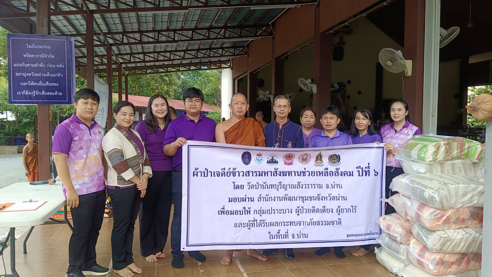 พช.น่าน : รับมอบข้าวสาร ผ้าป่าเจดีย์ข้าวสาร มหาสังฆทานช่วยเหลือสังคม ปีที่ 6 เพื่อนำไปแจกให้ครัวเรือนเปราะบาง และครัวเรือนตกเกณฑ์ TPMAP