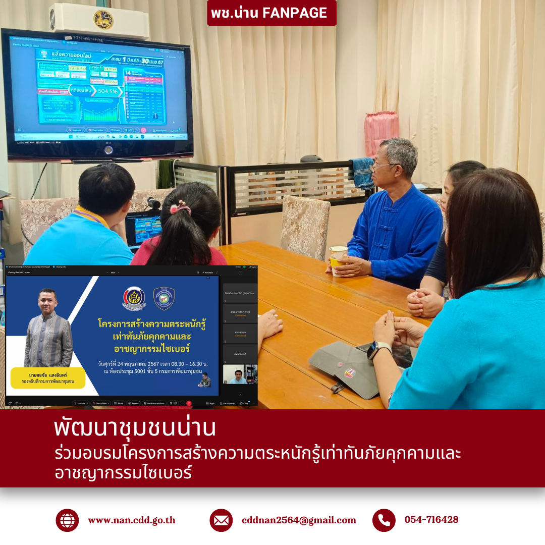 พช.น่าน ร่วมอบรมโครงการสร้างความตระหนักรู้เท่าทันภัยคุกคามและอาชญากรรมไซเบอร์