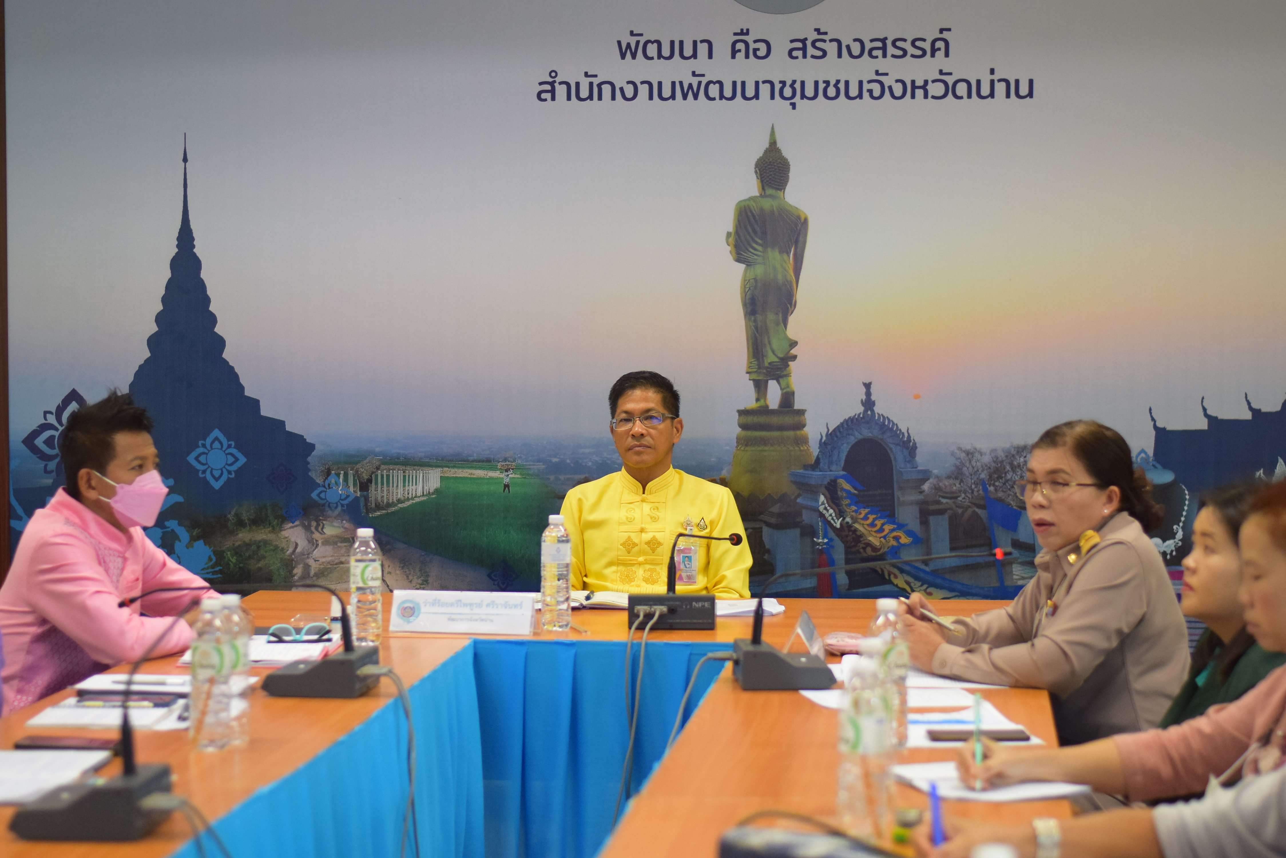 ว่าที่ร้อยตรีไพฑูรย์ ศรีราจันทร์ พัฒนาการจังหวัดน่าน เป็นประธานประชุมคณะกรรมการเครือข่ายกลุ่มอาชีพฯ จังหวัดน่าน และผู้ผลิต ผู้ประกอบการ OTOP จังหวัดน่าน ที่ได้รับการคัดเลือกเข้าร่วมแสดงและจำหน่ายผลิตภัณฑ์ชุมชน (OTOP) งาน OTOP ศิลปาชีพ ประทีปไทย OTOP ก้าวไกลด้วยพระบารมี โดยมีนางณัฐนรี ศรีชัยยะ ผู้อำนวยการกลุ่มงานส่งเสริมการพัฒนาชุมชน พร้อมด้วยเจ้าหน้าที่พัฒนาชุมชน เข้าร่วมการประชุมฯ เพื่อชี้แจงรายละเอียดแนวทางปฏิบัติในการเข้าร่วมงานฯ เพื่อให้การดำเนินงานบรรลุวัตถุประสงค์อย่างมีประสิทธิภาพ