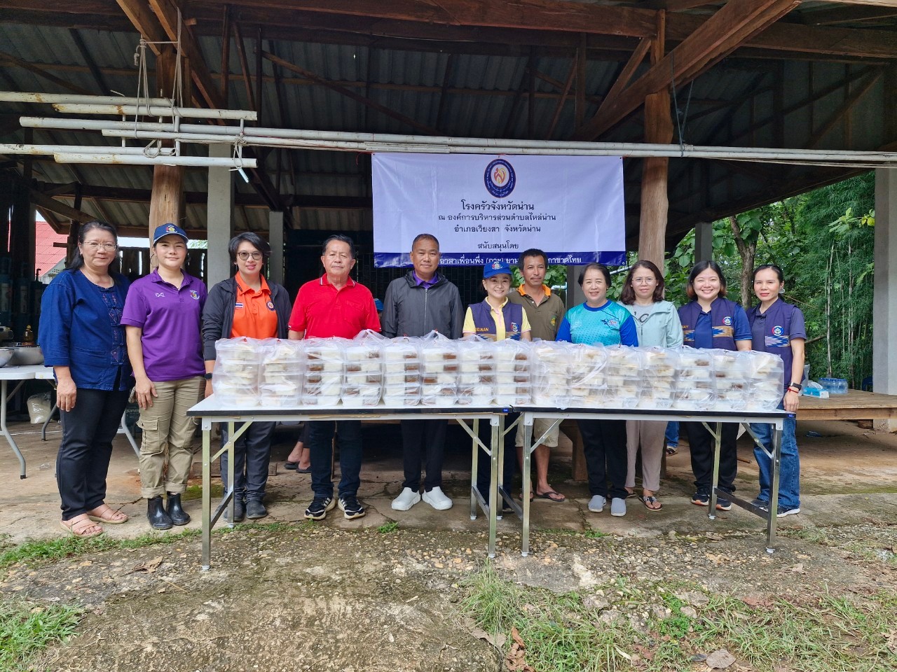 สำนักงานพัฒนาชุมชนจังหวัดน่าน โดยว่าที่ร้อยตรีไพฑูรย์ ศรีราจันทร์ พัฒนาการจังหวัดน่าน มอบหมายให้นางณัฐนรี ศรีชัยยะ ผู้อำนวยการกลุ่มงานส่งเสริมการพัฒนาชุมชน และนายชัยยะ ศรีชัยยะ ผู้อำนวยการกลุ่มงานยุทธศาสตร์การพัฒนาชุมชน นางสาวธัญภรณ์ ณ น่าน ผู้อำนวยการกลุ่มงานประสานและสนับสนุนการบริหารงานพัฒนาชุมชน พัฒนาการอำเภอ เจ้าหน้าที่พัฒนาชุมชน พร้อมด้วยเครือข่ายพัฒนาชุมชน ร่วมกันจัดกิจกรรมโรงครัวมูลนิธิอาสาเพื่อนพึ่ง(ภา)ยามยาก สภากาชาดไทย โดยการประสานงานของสำนักงานพัฒนาชุมชนจังหวัดน่าน เพื่อช่วยเหลือผู้ประสบอุทกภัย ในพื้นที่จังหวัดน่าน โดยมีการจัดทำข้าวกล่องเพื่อแจกจ่ายให้กับผู้ประสบอุทกภัย ในพื้นที่อำเภอเมืองน่าน อำเภอภูเพียง และอำเภอเวียงสา ตั้งแต่วันที่ 24-26 สิงหาคม 2567 จำนวน จุดละ 2,000 กล่องต่อวัน ตามสถานที่ ที่กำหนด 4 จุด ดังนี้