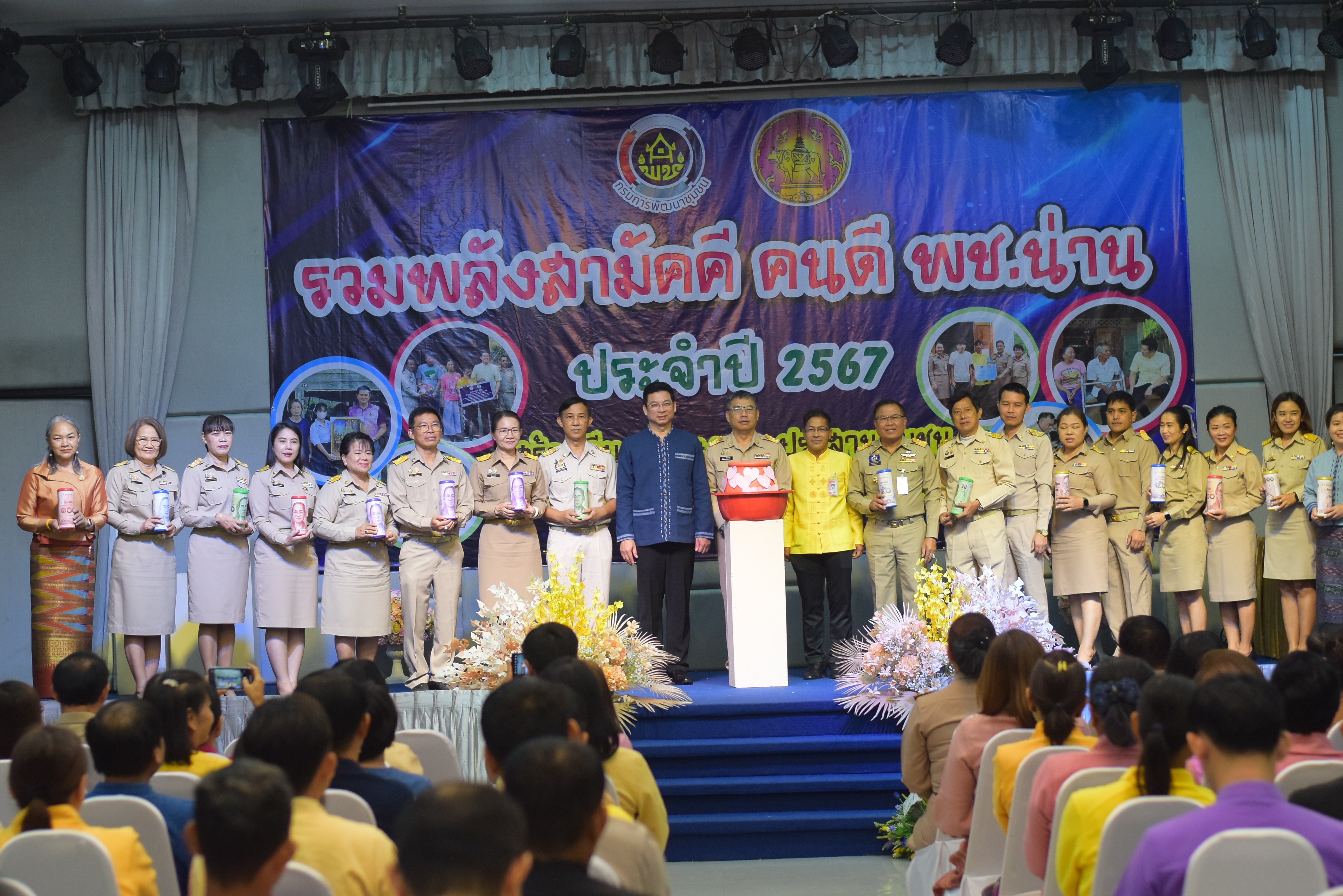 นายชัยนรงค์ วงศ์ใหญ่ ผู้ว่าราชการจังหวัดน่าน มอบหมายให้นายเทวา ปัญญาบุญ รองผู้ว่าราชการจังหวัดน่าน เป็นประธานเปิดงานมหกรรมรวมพลังสามัคคี คนดี พช.น่าน “สร้างทีม สร้างงาน ประสานชุมชน ร่วมขจัดความยากจนให้คนน่าน” ประจำปี 2567 โดยมีว่าที่ร้อยตรีไพฑูรย์ ศรีราจันทร์ พัฒนาการจังหวัดน่าน กล่าวรายงาน พร้อมด้วยนายธวัช ชุนเคลือบทอง ผู้พิพากษาหัวหน้าศาลจังหวัดน่าน นายประจักร์ ไชยกิจ ปลัดจังหวัดน่าน หัวหน้าส่วนราชการจังหวัด ผู้อำนวยการกลุ่มงาน พัฒนาการอำเภอ จ้าหน้าที่พัฒนาชุมชนจังหวัด /อำเภอ หน่วยงานภาคีภาครัฐ/เอกชน ผู้แทนเครือข่าย กลุ่มองค์กรที่เกี่ยวข้อง เข้าร่วมฯ