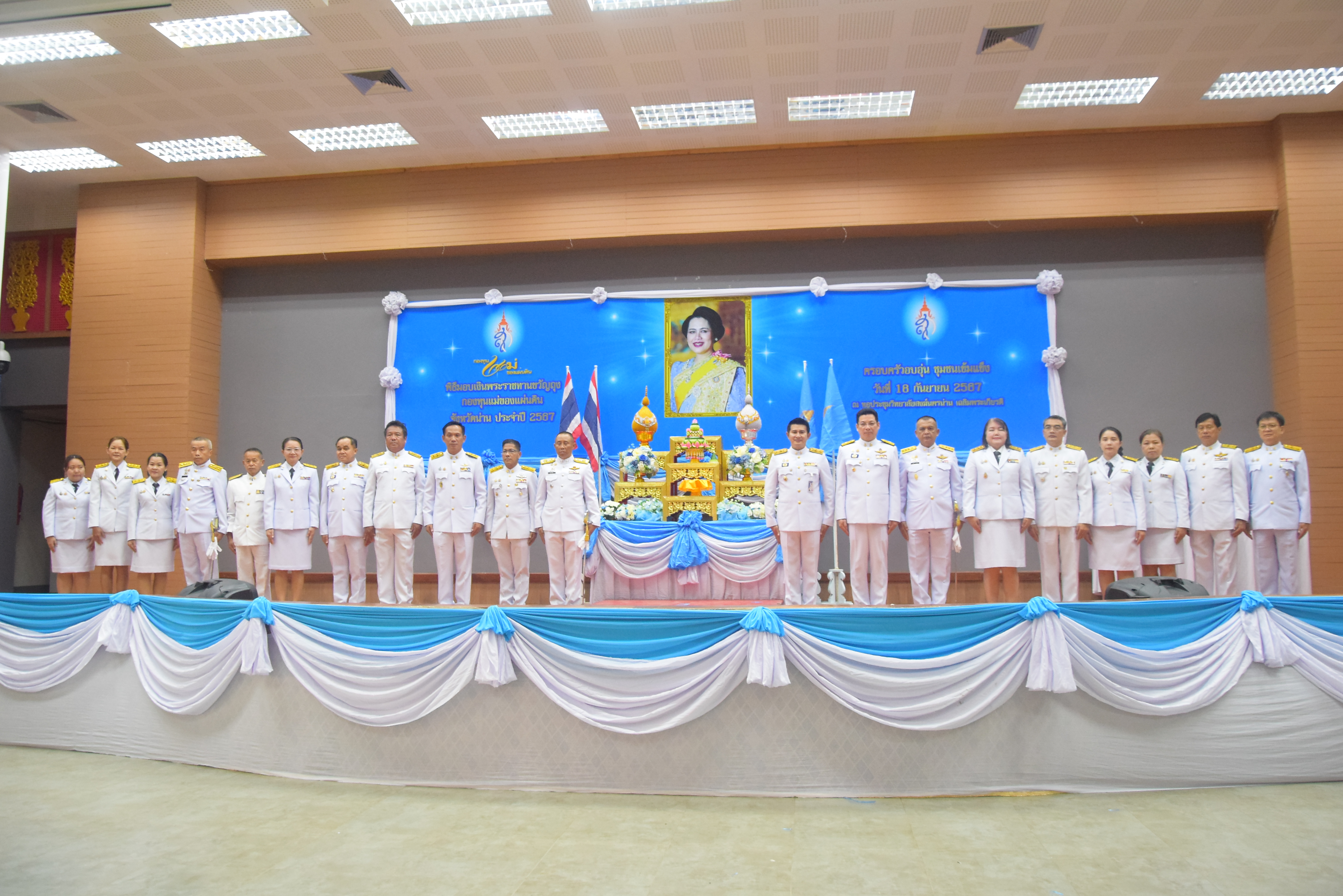 1. 1. พิธีมอบเงินพระราชทานขวัญถุงกองทุนแม่ของแผ่นดินจังหวัดน่าน แก่หมู่บ้านต้นกล้ากองทุนแม่ของแผ่นดิน ประจำปี 2567 จำนวน 18 หมู่บ้าน/ชุมชน