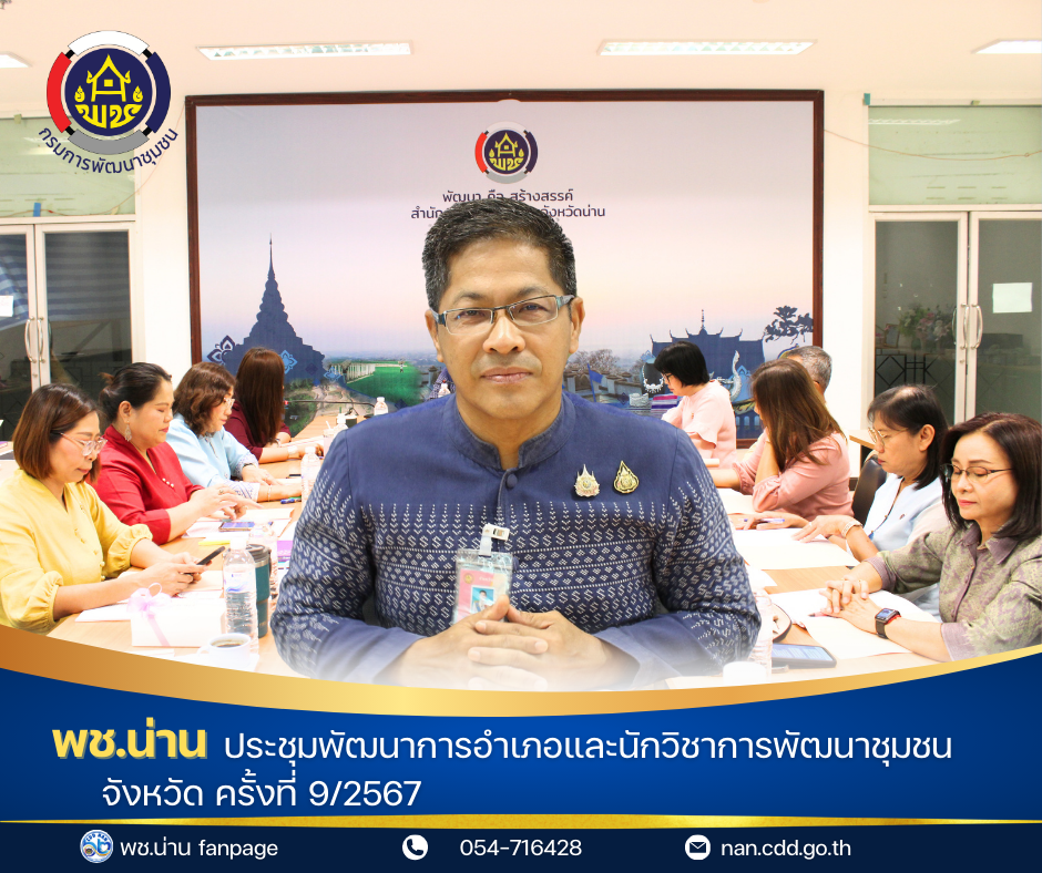 (#)สร้างสรรค์ชุมชน คนพช.น่าน(#) พช.น่าน ประชุมพัฒนาการอำเภอและนักวิชาการพัฒนาชุมชนจังหวัด ครั้งที่ 9/2567