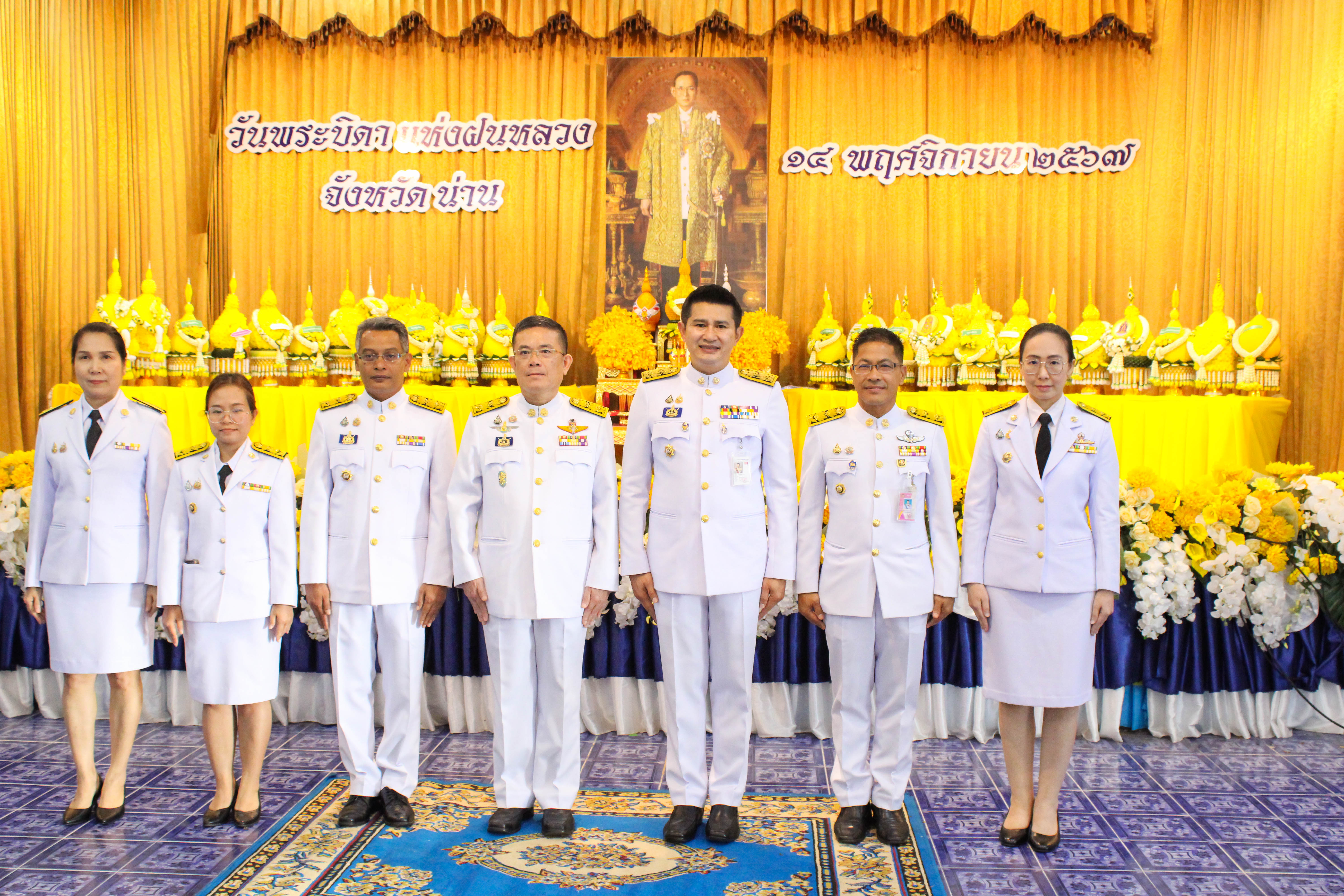 วันที่ 14 พฤศจิกายน 2567 เวลา 09.00 น. ณ ห้องประชุมสำนักงานเขตพื้นที่การศึกษาประถมศึกษาน่าน เขต 1 ถนนยันตรกิจโกศล ตำบลดูได้ อำเภอเมืองน่าน จังหวัดน่าน นายชัยนรงค์ วงศ์ใหญ่ ผู้ว่าราชการจังหวัดน่าน เป็นประธานงาน พร้อมด้วยข้าราชการ,ตุลาการ, ทหาร,ตำรวจ,อัยการ,องค์กรอิสระ,บุคลากรภาครัฐและภาคเอกชน เข้าร่วมประกอบพิธีวางพานพุ่มดอกไม้สด ถวายแด่พระบาทสมเด็จพระบรมชนกาธิเบศร มหาภูมิพลอดุลยเดชมหาราช บรมนาถบพิตร “วันพระบิดาแห่งฝนหลวง” ประจำปี 2567