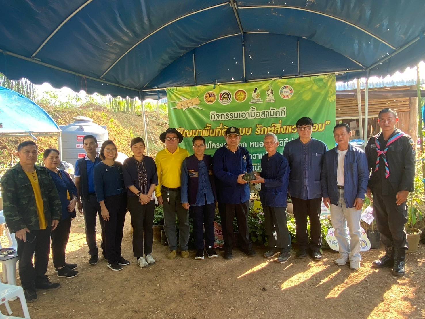 จังหวัดน่าน ได้ดำเนินโครงการพัฒนาพื้นที่ต้นแบบการพัฒนาคุณภาพชีวิตตามหลักทฤษฎีใหม่ ประยุกต์สู่ “โคก หนอง นา โมเดล” และโครงการพัฒนาหมู่บ้านเศรษฐกิจพอเพียง ตั้งปี พ.ศ. 2564 โดยมีวัตถุประสงค์เพื่อสร้าง/พัฒนาพื้นที่ให้เป็นแหล่งเรียนรู้ให้กับประชาชนในรูปแบบ “โคก หนอง นา” ระดับหมู่บ้าน และเพื่อส่งเสริมการเรียนรู้การน้อมนำปรัชญาของเศรษฐกิจพอเพียงประยุกต์สู่การปฏิบัติในรูปแบบ “โคก หนอง นา โมเดล” และได้จัดทำโครงการโคก หนอง นาวิถีน่าน พอเพียงสู่ความยั่งยืน เพื่อส่งเสริม สนับสนุน สร้างความต่อเนื่องการพัฒนาพื้นที่ต้นแบบการพัฒนาคุณภาพชีวิตตามหลักทฤษฎีใหม่ประยุกต์สู่ “โคก หนอง นา” เป็นศูนย์เรียนรู้หรือแหล่งเรียนรู้ที่มีชีวิต และมีขีดความสามารถในการส่งเสริมการเรียนรู้ของประชาชนและต่อยอดพื้นที่ต้นแบบการพัฒนาคุณภาพชีวิตตามหลักทฤษฎีใหม่ ประยุกต์สู่ “โคก หนอง นา” สู่การพัฒนาพื้นที่แบบอารยเกษตร ซึ่งกิจกรรมในวันนี้มีกิจกรรมเอามื้อสามัคคีต่างๆ ดังนี้ 1) กิจกรรมห่มดิน 2) กิจกรรมปลูกผักสวนครัว 3) กิจกรรมการทำจุลินทรีย์บอล