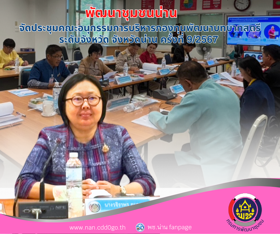 (#)สร้างสรรค์ชุมชน คนพช.น่าน (#) พช.น่าน จัดประชุมคณะอนุกรรมการบริหารกองทุนพัฒนาบทบาทสตรีระดับจังหวัด จังหวัดน่าน ครั้งที่ 9/2567