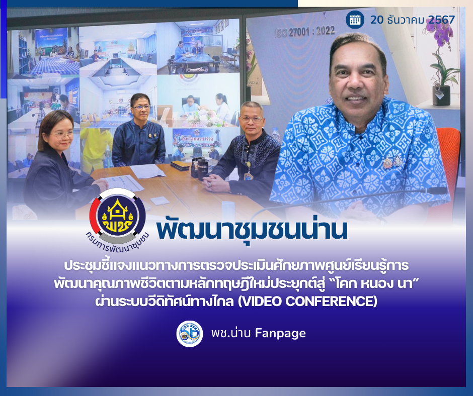 #น่านไม่เนิบ #NAN3FAST พช.น่าน ร่วมประชุมชี้แจงแนวทางการตรวจประเมินศักยภาพศูนย์เรียนรู้การพัฒนาคุณภาพชีวิตตามหลักทฤษฎีใหม่ประยุกต์สู่ “โคก หนอง นา” ผ่านระบบวีดิทัศน์ทางไกล (video conference)