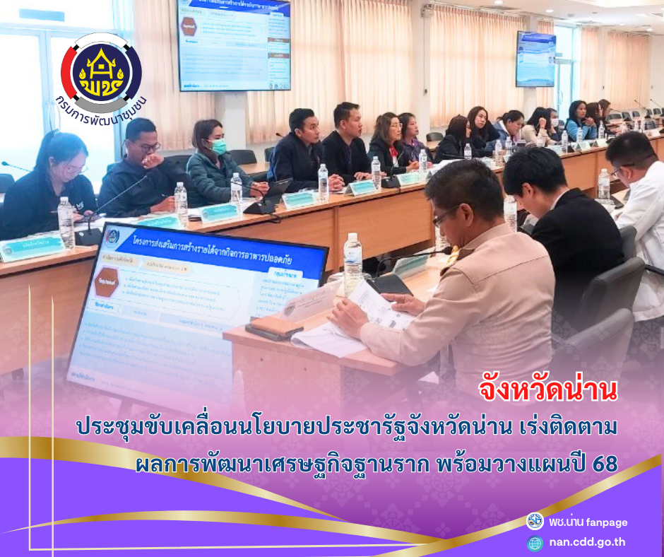 #น่านไม่เนิบ #NAN3FAST จังหวัดน่าน ประชุมขับเคลื่อนนโยบายประชารัฐจังหวัดน่าน เร่งติดตามผลการพัฒนาเศรษฐกิจฐานราก พร้อมวางแผนปี 68