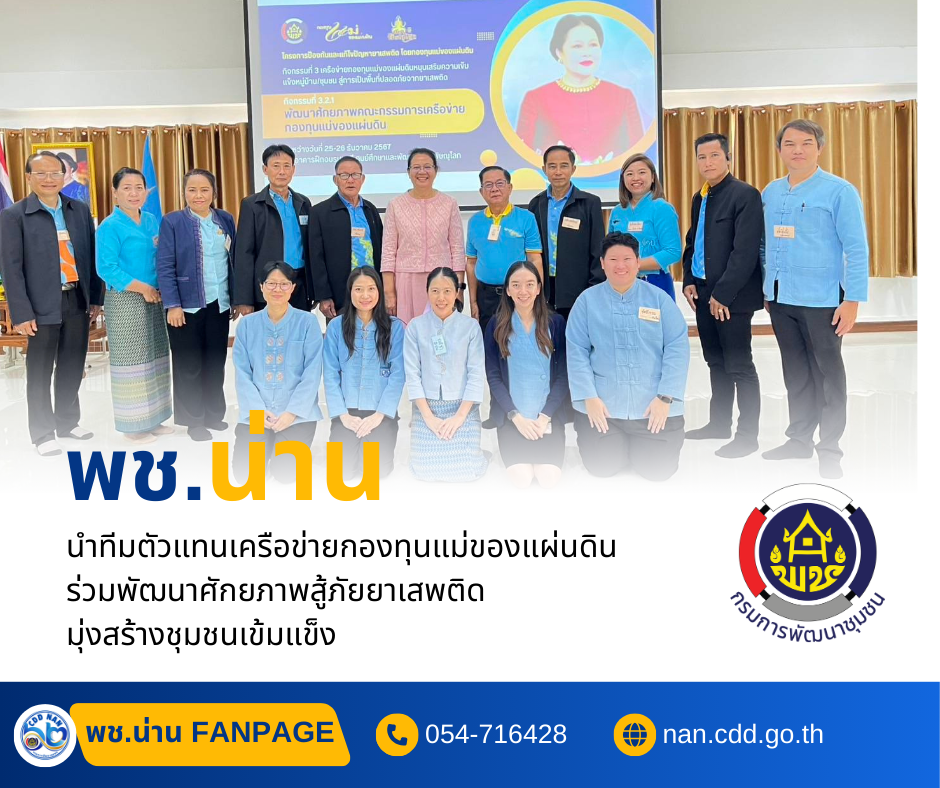 #น่านไม่เนิบ #NAN3FAST พช.น่าน นำทีมตัวแทนเครือข่ายกองทุนแม่ของแผ่นดิน ร่วมพัฒนาศักยภาพสู้ภัยยาเสพติด มุ่งสร้างชุมชนเข้มแข็ง