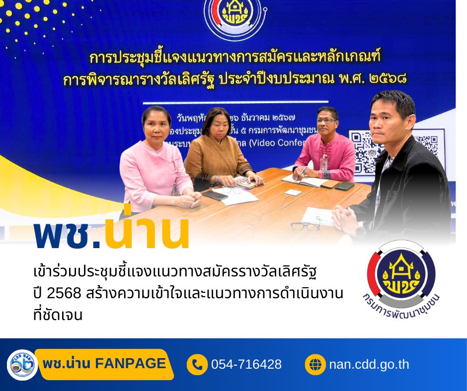 #น่านไม่เนิบ #NAN3FAST พช.น่าน เข้าร่วมประชุมชี้แจงแนวทางสมัครรางวัลเลิศรัฐ ปี 2568 สร้างความเข้าใจและแนวทางการดำเนินงานที่ชัดเจน