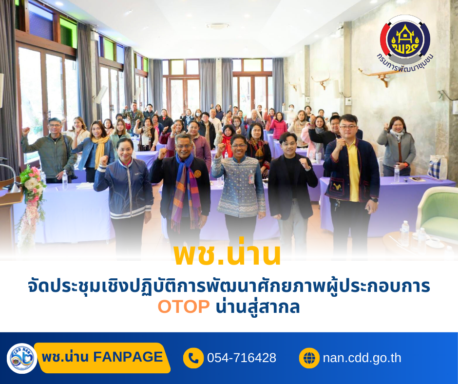 #น่านไม่เนิบ #NAN3FAST สำนักงานพัฒนาชุมชนจังหวัดน่าน จัดประชุมเชิงปฏิบัติการพัฒนาศักยภาพผู้ประกอบการ OTOP น่านสู่สากล
