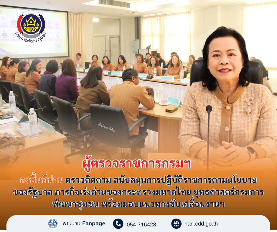 #น่านไม่เนิบ #NAN3FAST ผู้ตรวจราชการกรมฯ ลงพื้นที่น่าน ตรวจติดตาม สนับสนุนการปฏิบัติราชการตามนโยบายของรัฐบาล ภารกิจเร่งด่วนของกระทรวงมหาดไทย ยุทธศาสตร์กรมการพัฒนาชุมชน พร้อมมอบแนวทางขับเคลื่อนงานฯ