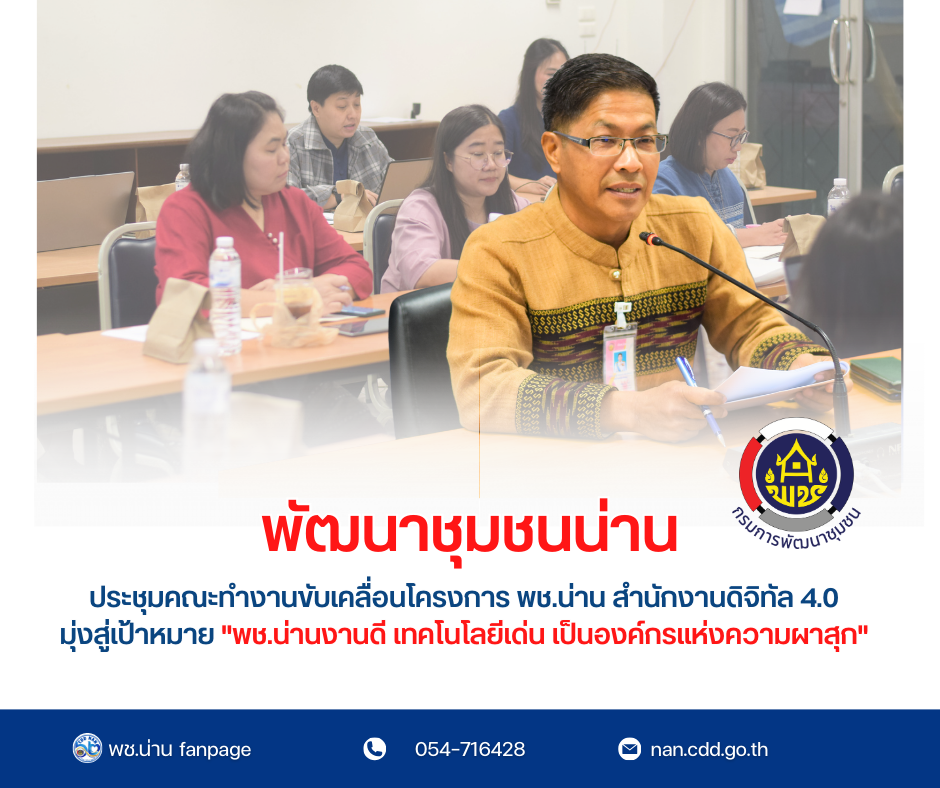#น่านไม่เนิบ #NAN3FAST พช.น่าน ประชุมคณะทำงานขับเคลื่อนโครงการ พช.น่าน สำนักงานดิจิทัล 4.0 มุ่งสู่เป้าหมาย “พช.น่านงานดี เทคโนโลยีเด่น เป็นองค์กรแห่งความผาสุก”
