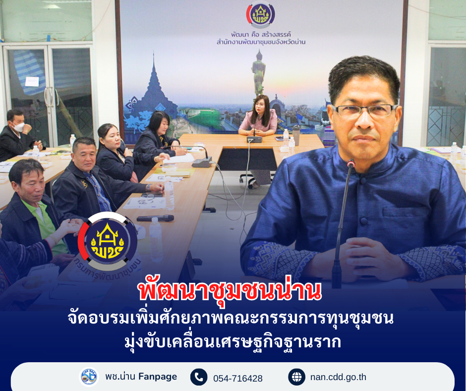 #น่านไม่เนิบ #NAN3FAST พัฒนาชุมชนน่าน จัดอบรมเพิ่มศักยภาพคณะกรรมการทุนชุมชน มุ่งขับเคลื่อนเศรษฐกิจฐานราก