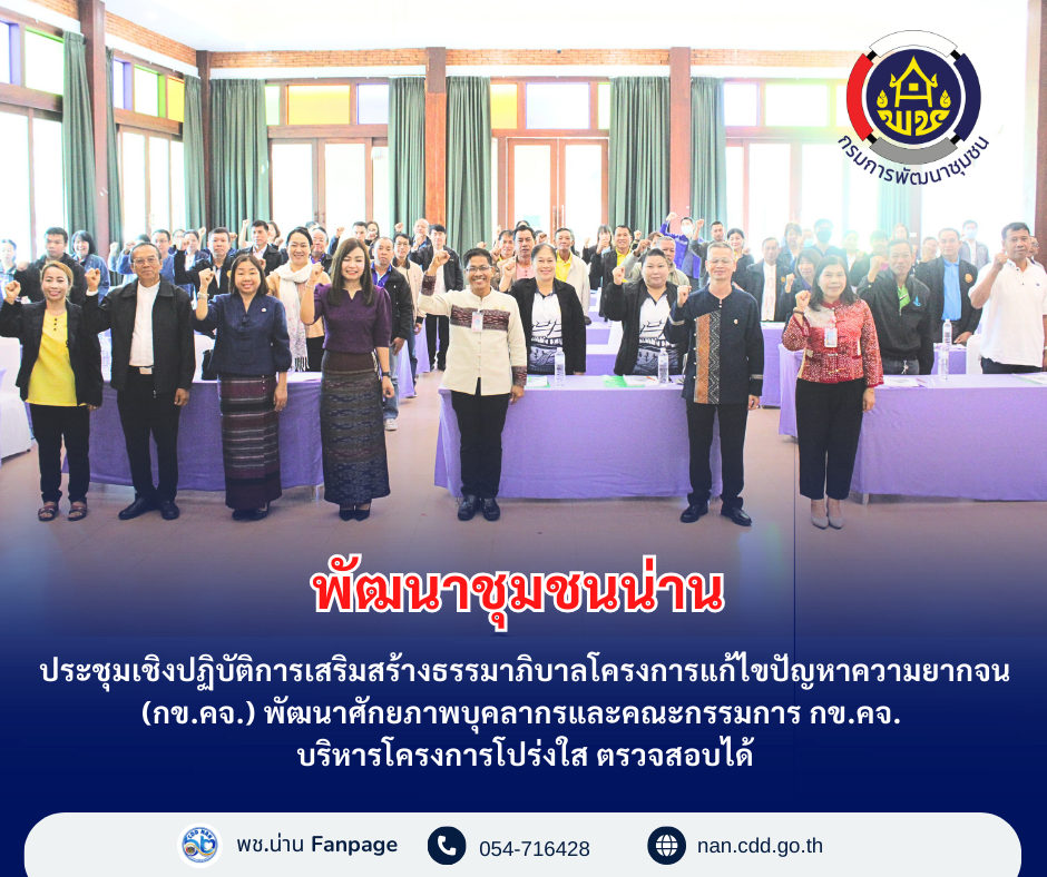 #น่านไม่เนิบ #NAN3FAST พช.น่าน ประชุมเชิงปฏิบัติการเสริมสร้างธรรมาภิบาลโครงการแก้ไขปัญหาความยากจน (กข.คจ.) พัฒนาศักยภาพบุคลากรและคณะกรรมการ กข.คจ. บริหารโครงการโปร่งใส ตรวจสอบได้