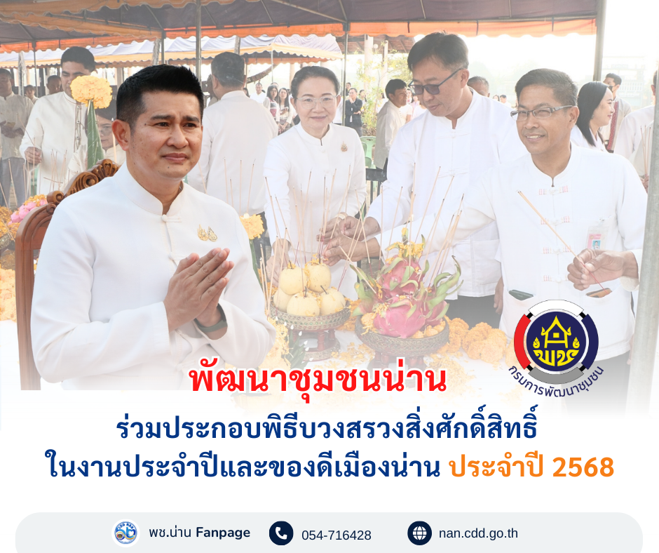 #น่านไม่เนิบ #NAN3FAST พช.น่าน ร่วมประกอบพิธีบวงสรวงสิ่งศักดิ์สิทธิ์ ในงานประจำปีและของดีเมืองน่าน ประจำปี 2568