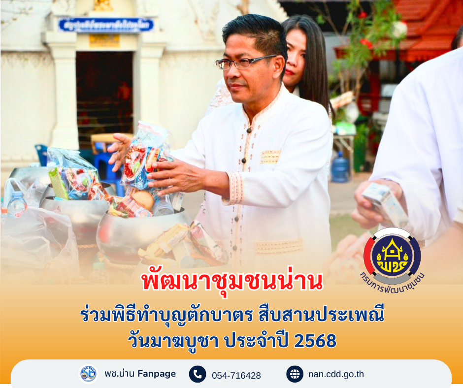 #น่านไม่เนิบ #NAN3FAST พัฒนาชุมชนจังหวัดน่าน ร่วมสืบสานประเพณีวันมาฆบูชา ประจำปี 2568