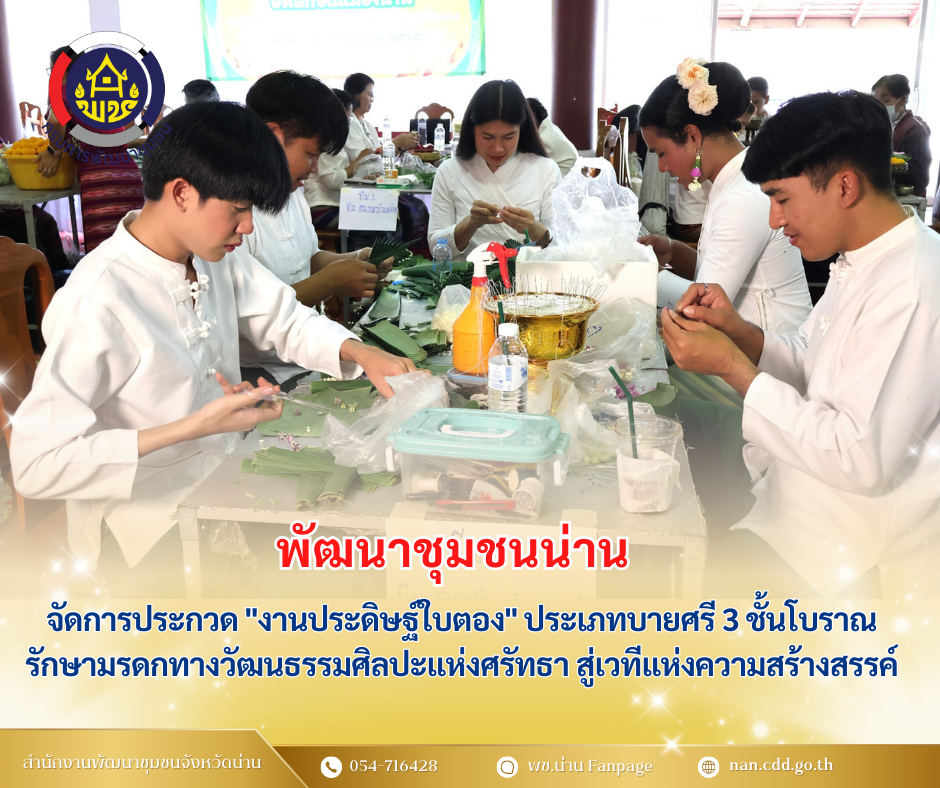 #น่านไม่เนิบ#NAN3FAST พช.น่าน จัดการประกวด “งานประดิษฐ์ใบตอง” ประเภทบายศรี 3 ชั้นโบราณ รักษามรดกทางวัฒนธรรมศิลปะแห่งศรัทธา สู่เวทีแห่งความสร้างสรรค์