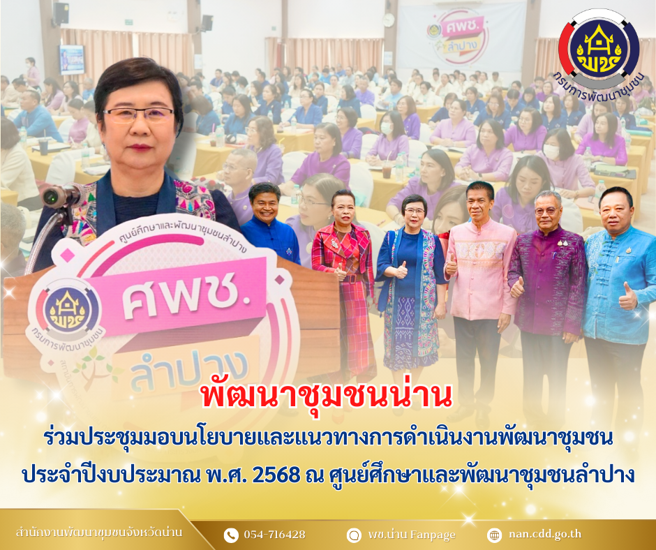 #น่านไม่เนิบ #NAN3FAST พช.น่าน ประชุมมอบนโยบายและแนวทางการดำเนินงานพัฒนาชุมชน ประจำปีงบประมาณ พ.ศ. 2568 ณ ศูนย์ศึกษาและพัฒนาชุมชนลำปาง