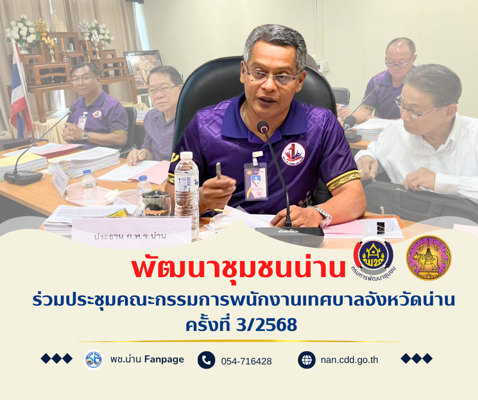 #น่านไม่เนิบ #NAN3FAST พช.น่าน ร่วมประชุมคณะกรรมการพนักงานเทศบาลจังหวัดน่าน ครั้งที่ 3/2568