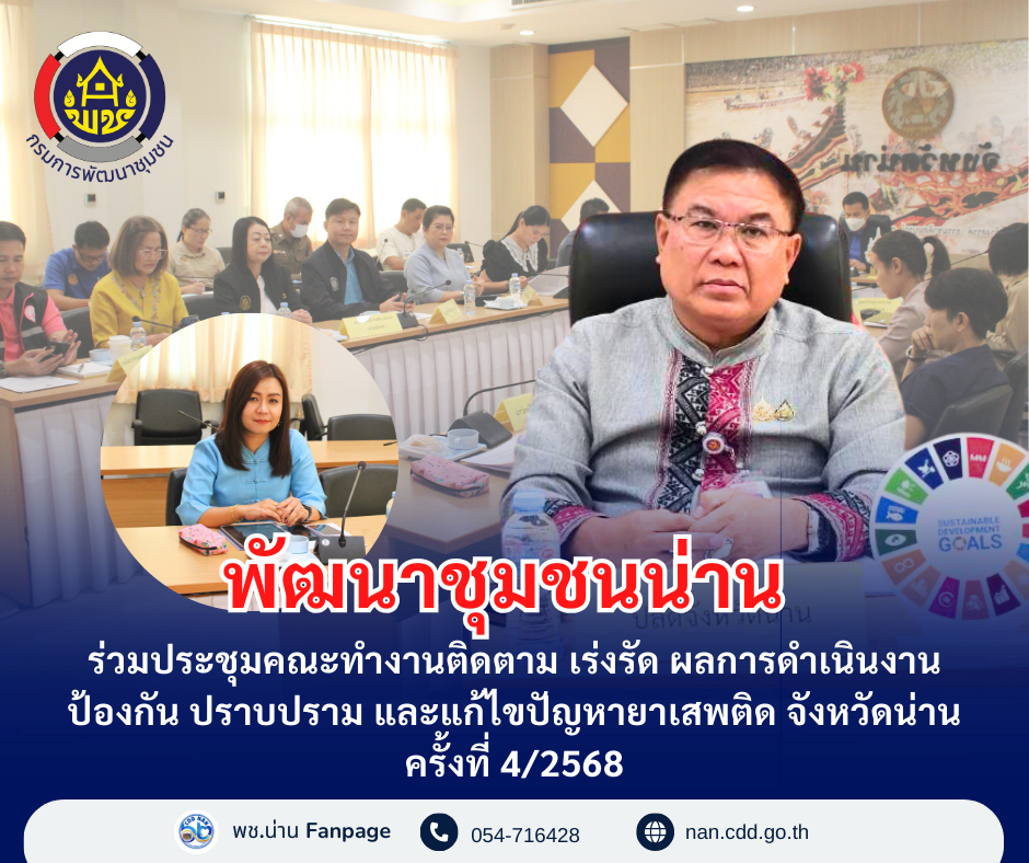 #น่านไม่เนิบ#NAN3FAST พช.น่าน ร่วมประชุมคณะทำงานติดตาม เร่งรัด ผลการดำเนินงานป้องกัน ปราบปราม และแก้ไขปัญหายาเสพติด จังหวัดน่าน ครั้งที่ 4/2568