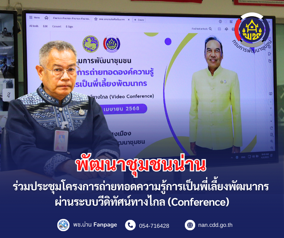 #น่านไม่เนิบ#NAN3FAST พช.น่าน ร่วมประชุมโครงการถ่ายทอดความรู้การเป็นพี่เลี้ยงพัฒนากร ผ่านระบบวีดิทัศน์ทางไกล (Conference)
