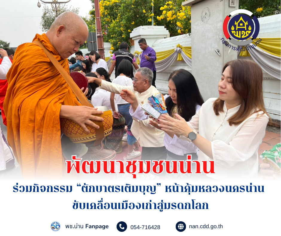 #น่านไม่เนิบ#NAN3FAST พัฒนาชุมชนน่าน ร่วมกิจกรรม “ตักบาตรเติมบุญ” หน้าคุ้มหลวงนครน่าน ขับเคลื่อนเมืองเก่าสู่มรดกโลก