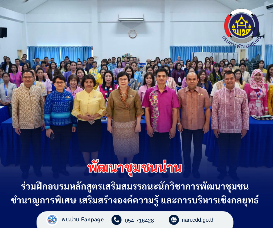 พช.น่าน ร่วมฝึกอบรมหลักสูตรเสริมสมรรถนะนักวิชาการพัฒนาชุมชนชำนาญการพิเศษ เสริมสร้างองค์ความรู้ และการบริหารเชิงกลยุทธ์