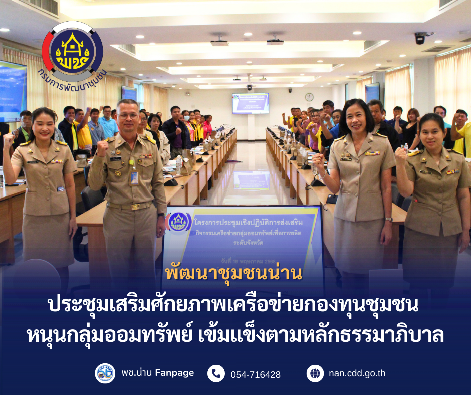 พช.น่าน ประชุมเสริมศักยภาพเครือข่ายกองทุนชุมชน หนุนกลุ่มออมทรัพย์เข้มแข็งตามหลักธรรมาภิบาล