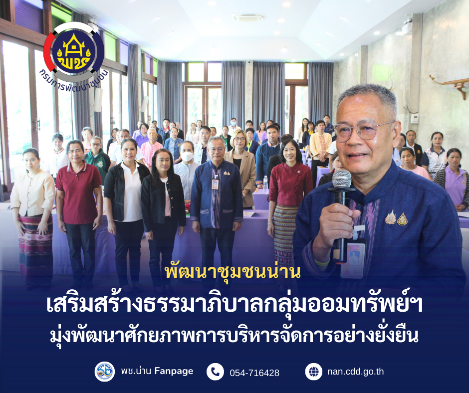 พช.น่าน จัดประชุมเชิงปฏิบัติการเสริมสร้างธรรมาภิบาลกลุ่มออมทรัพย์ฯ มุ่งพัฒนาศักยภาพการบริหารจัดการอย่างยั่งยืน