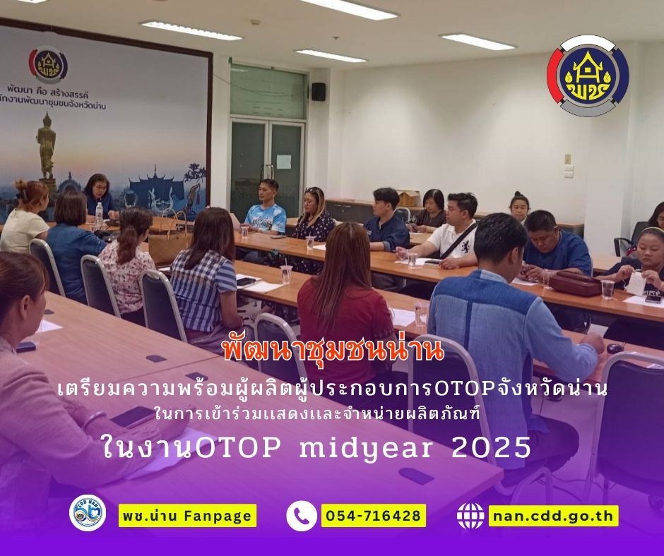 จังหวัดน่านประชุมเตรียมความพร้อมผู้ผลิต ผู้ประกอบการ OTOP ร่วมแสดงสินค้าในงาน OTOP Midyear 2025