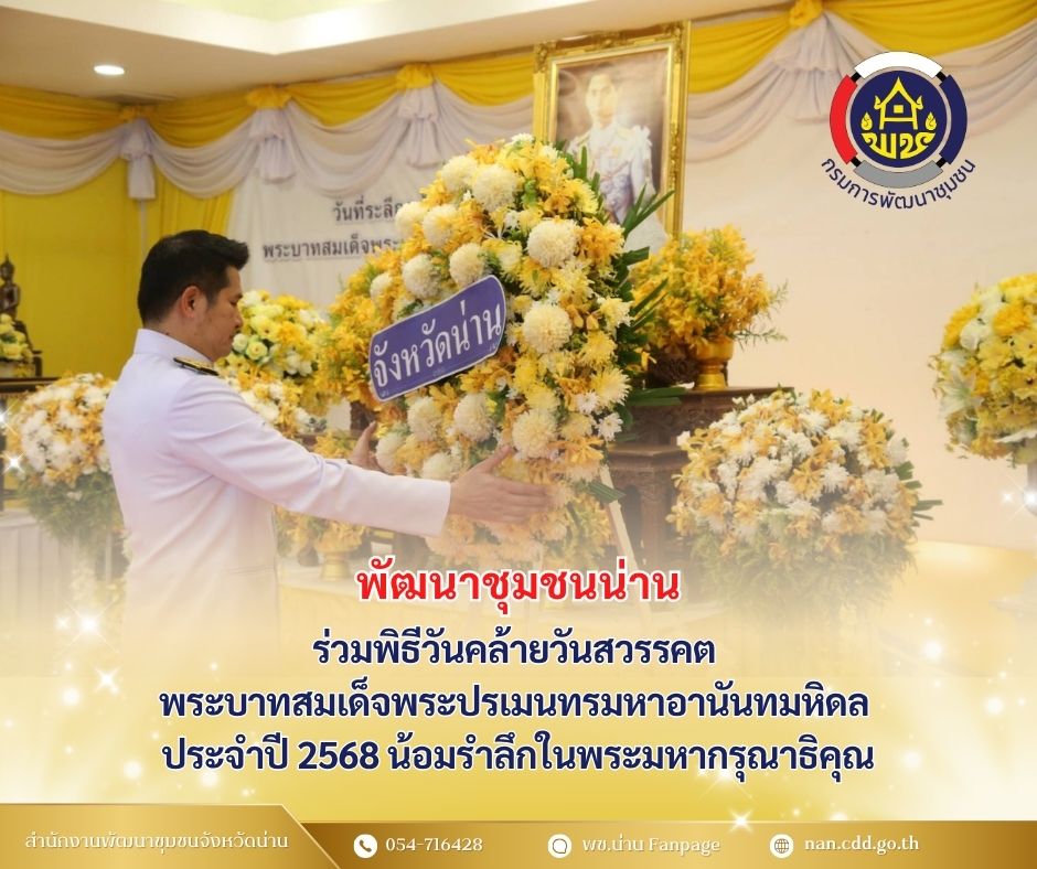 พช.น่าน ร่วมพิธีวันคล้ายวันสวรรคต พระบาทสมเด็จพระปรเมนทรมหาอานันทมหิดล ประจำปี 2568 น้อมรำลึกในพระมหากรุณาธิคุณ