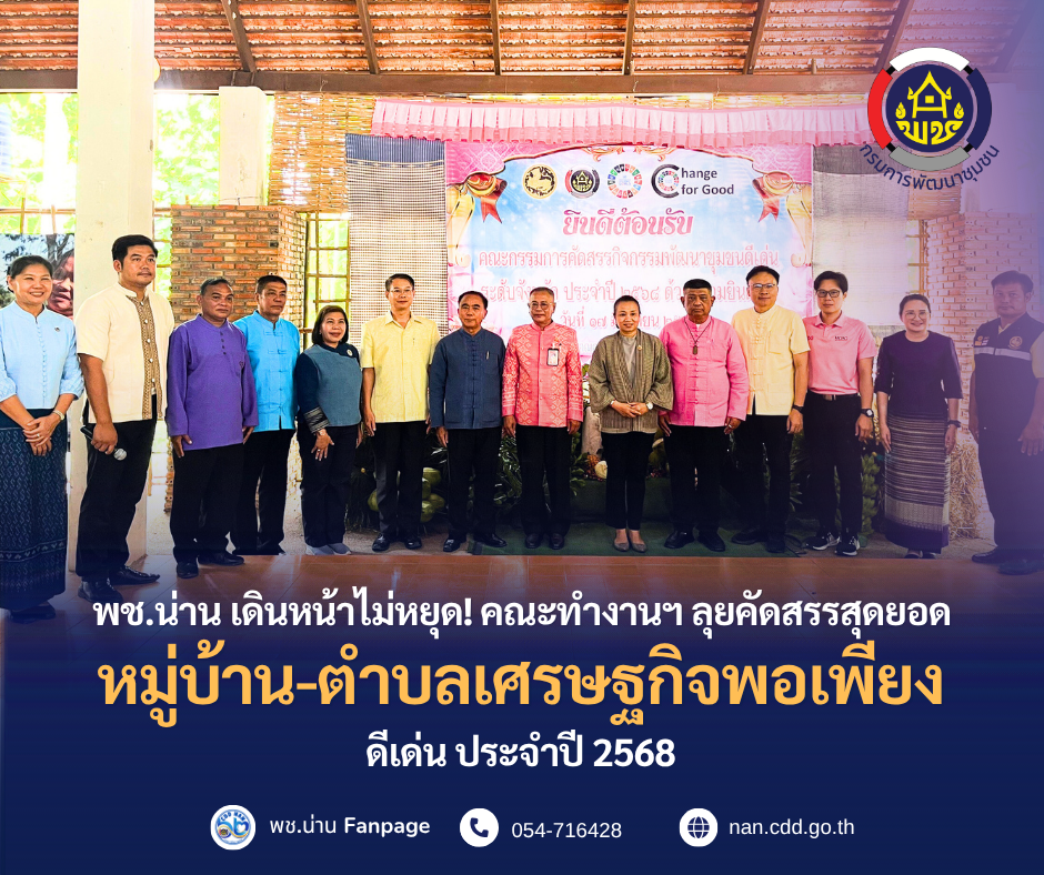 พช.น่าน เดินหน้าไม่หยุด! คณะทำงานฯ ลุยคัดสรรสุดยอดหมู่บ้าน-ตำบลเศรษฐกิจพอเพียงดีเด่น 2568