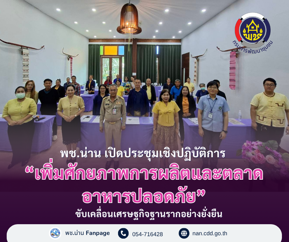 พช.น่าน เปิดประชุมเชิงปฏิบัติการ “เพิ่มศักยภาพการผลิตและตลาดอาหารปลอดภัย” ขับเคลื่อนเศรษฐกิจฐานรากอย่างยั่งยืน