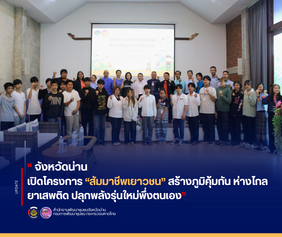 น่านเปิดโครงการ “สัมมาชีพเยาวชน” สร้างภูมิคุ้มกัน ห่างไกลยาเสพติด ปลุกพลังรุ่นใหม่พึ่งตนเอง