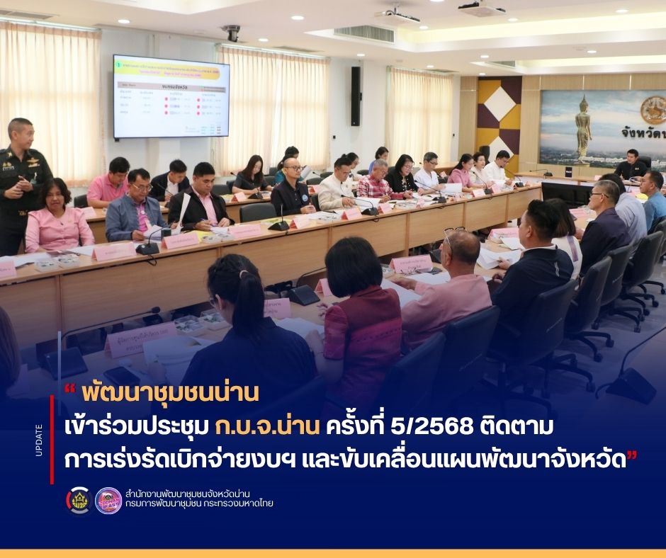 พช.น่าน เข้าร่วมประชุม ก.บ.จ.น่าน ครั้งที่ 5/2568 ติดตามการเร่งรัดเบิกจ่ายงบฯ และขับเคลื่อนแผนพัฒนาจังหวัด