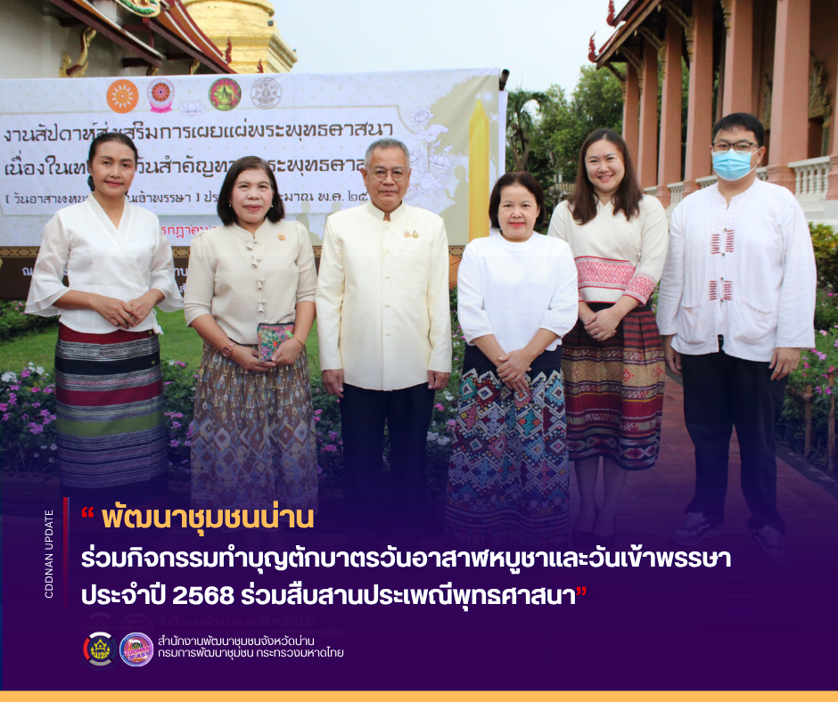 พช.น่าน ร่วมกิจกรรมทำบุญตักบาตรวันอาสาฬหบูชาและวันเข้าพรรษา ประจำปี 2568 ร่วมสืบสานประเพณีพุทธศาสนา